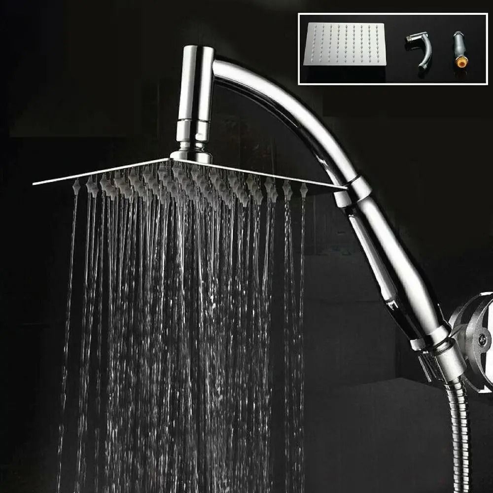 High Pressure Square Rainfall Shower Head With Stainless Steel Body And Curved Extension Arm 6 In Square