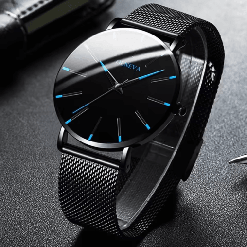 Minimalist Geneva Watch For Men Large Round Dial Quartz Wristwatch With Mesh Strap black