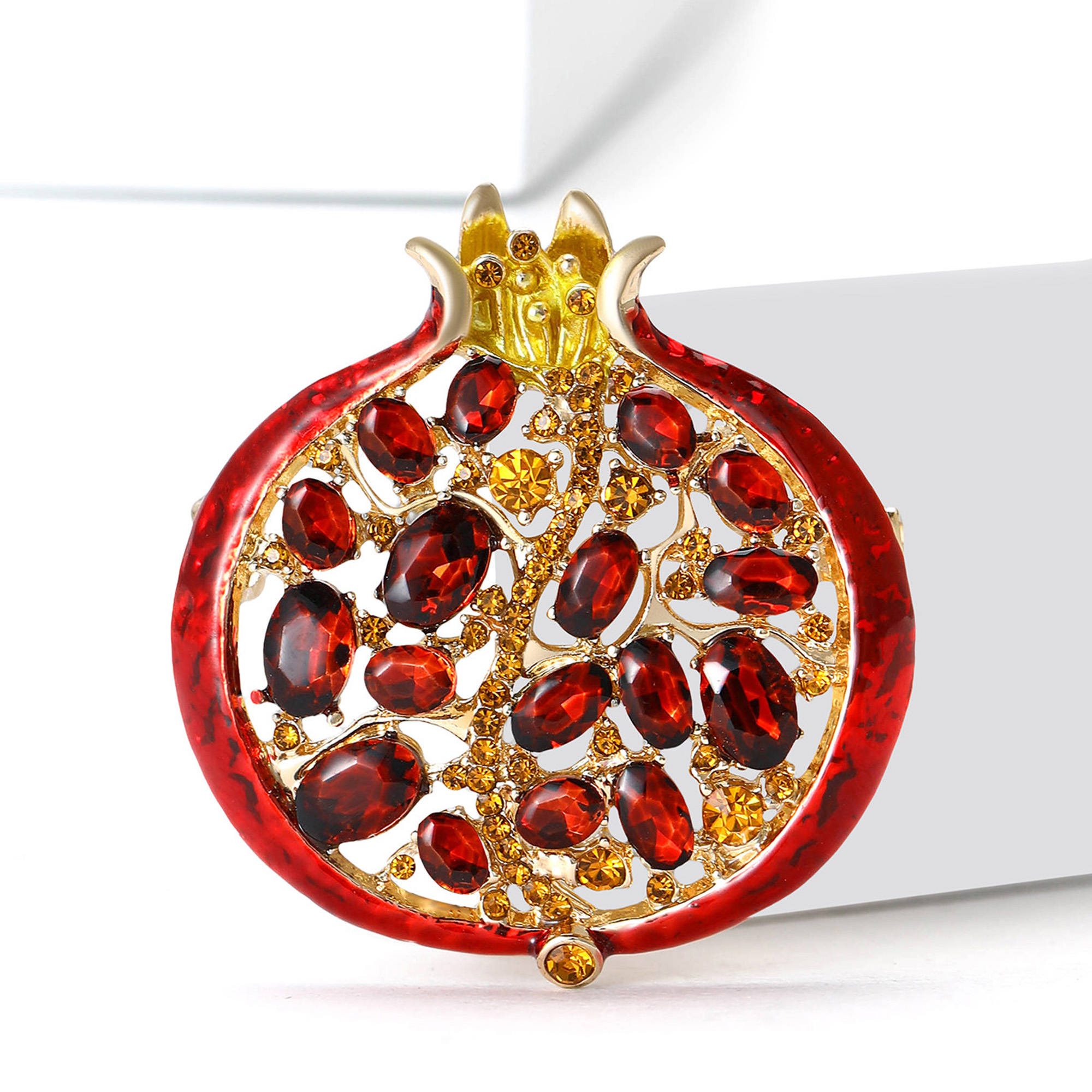 Enamel Fruit Plant Pomegranate Brooch With Luxury Rhinestones For Women Party Gifts Enamel Fruit Plant Pomegranate Brooch With Luxury Rhinestones For Women Party Gifts
