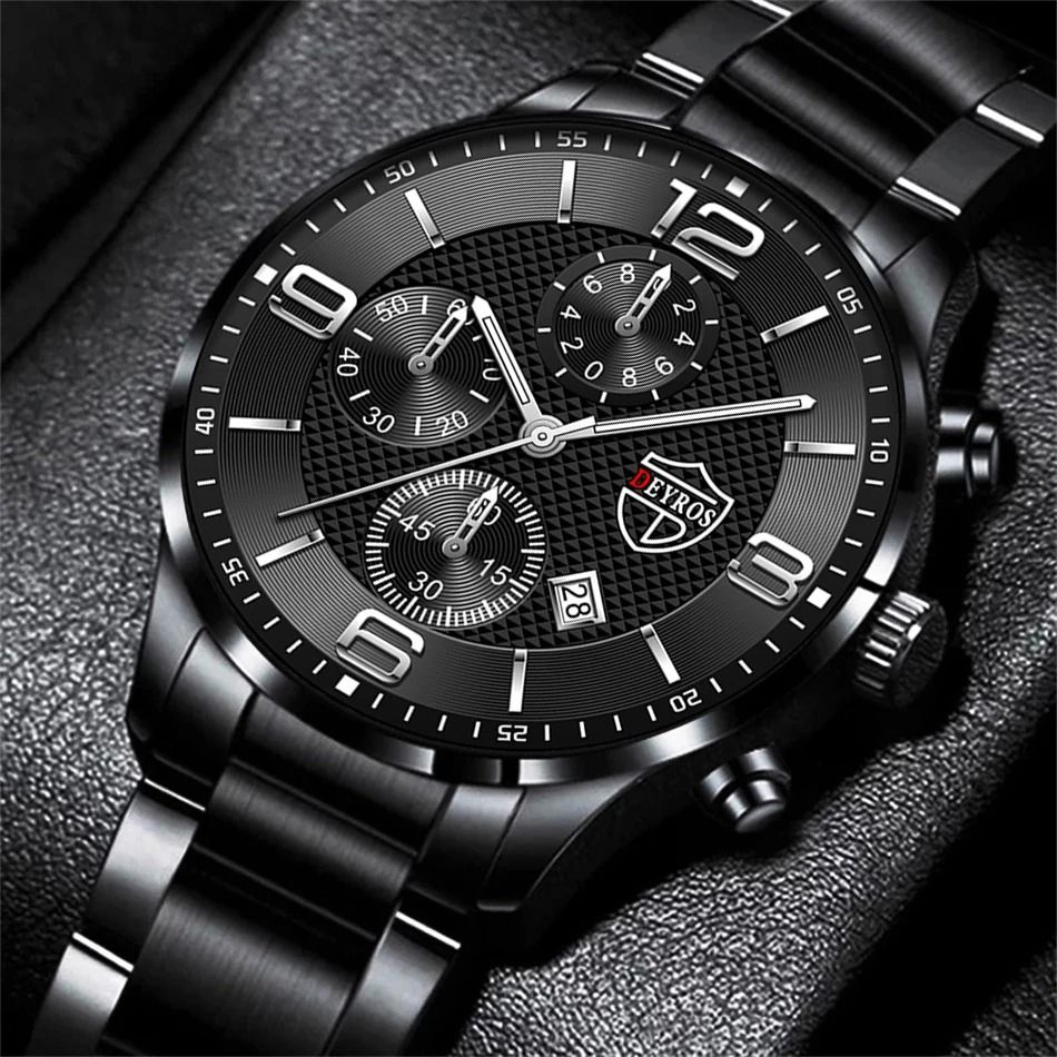 PrestigeTime Luxury Stainless Steel Mens Watch With Luminous Dial And Waterproof Design gold White