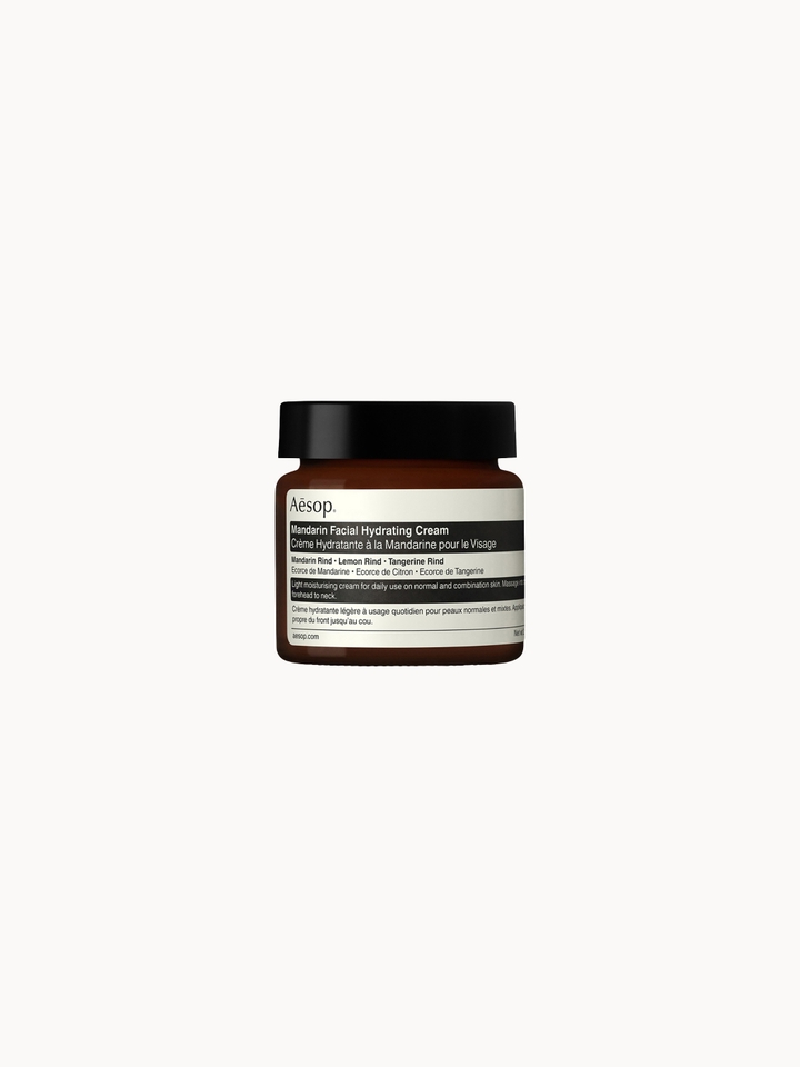 Apply a layer of Aesop Mandarin Facial Hydrating Cream to parched, dull skin for a revitalised complexion. Enhanced with cleansing citrus ingredients, including Mandarin, Lemon and Tangerine rinds, it hydrates and energises for a healthy and radiant end result.The lightweight formula is cooling and hydrating, with a zestful citrus scent to leave skin clean and fresh post-application. For a mattified and shine-free finish that won’t dry out your complexion, apply half a teaspoon of the hydrating moisturiser to a clean face after cleansing and toning.Ideal for normal and combination skin types, or oilier skin through cooler months.