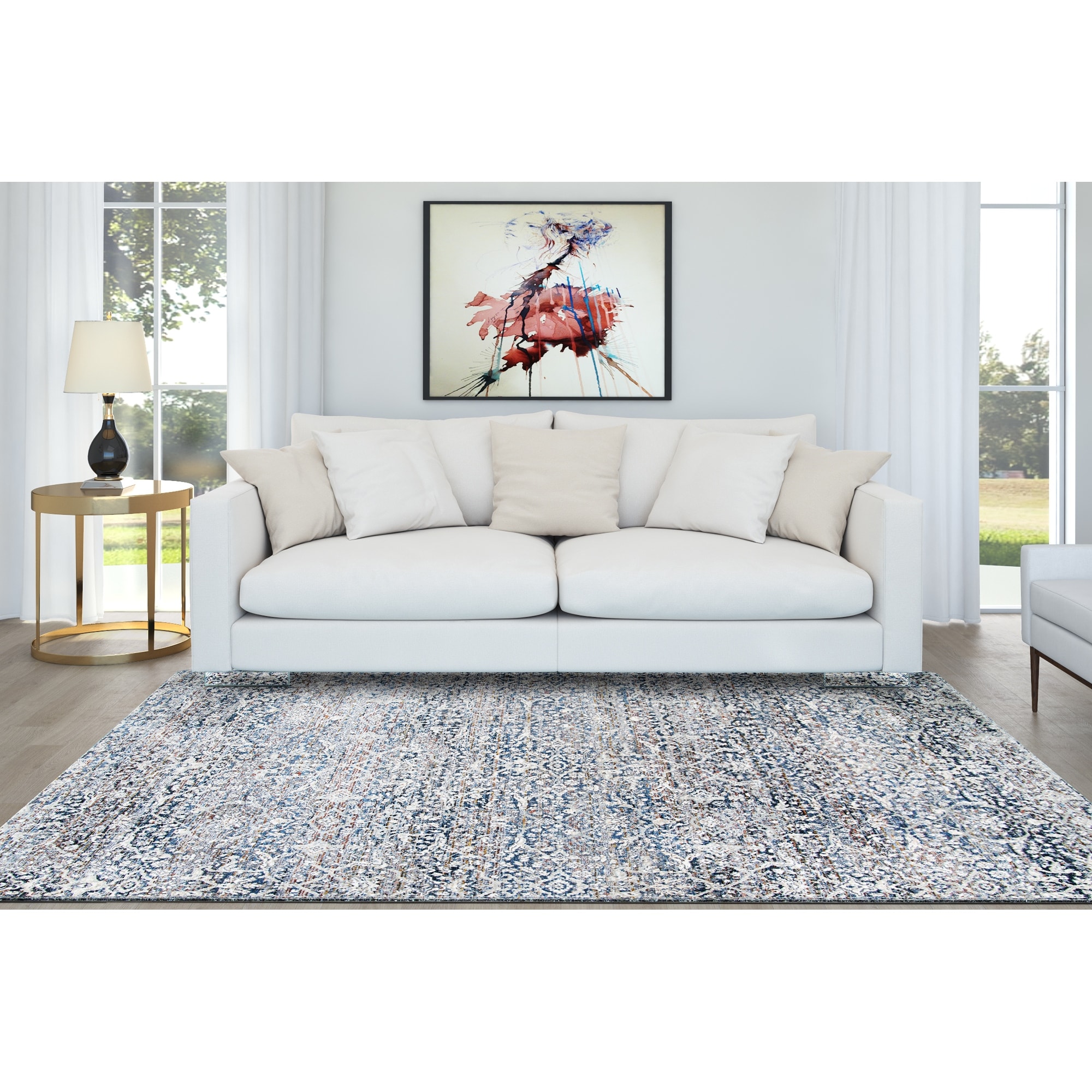 Gertmenian Crystal Print Washable Digital Printed Flat Pile Polyester Slip Resistant Area Rug Collection
