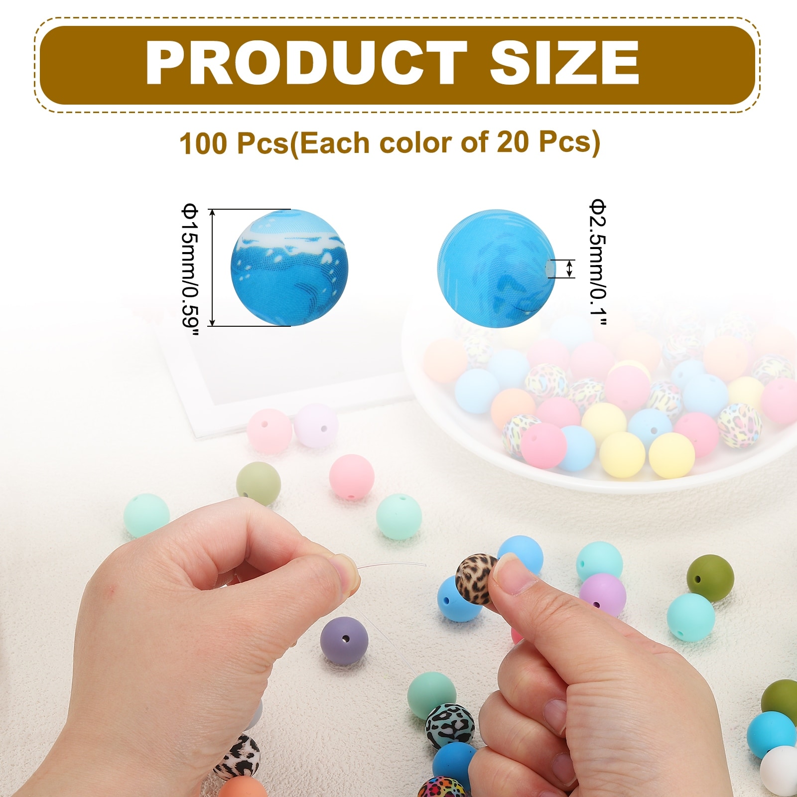 Silicone Beads Turquoise Green Round Loose Rubber Beads Silicone Craft Smooth Ball Small Hole