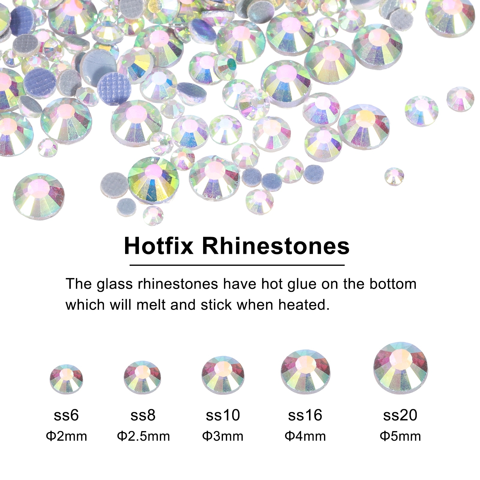 Hotfix Rhinestones Flatback Crystal Glass Gems with Clear Bag Nail Art Kit for Crafts Clothes Decoration