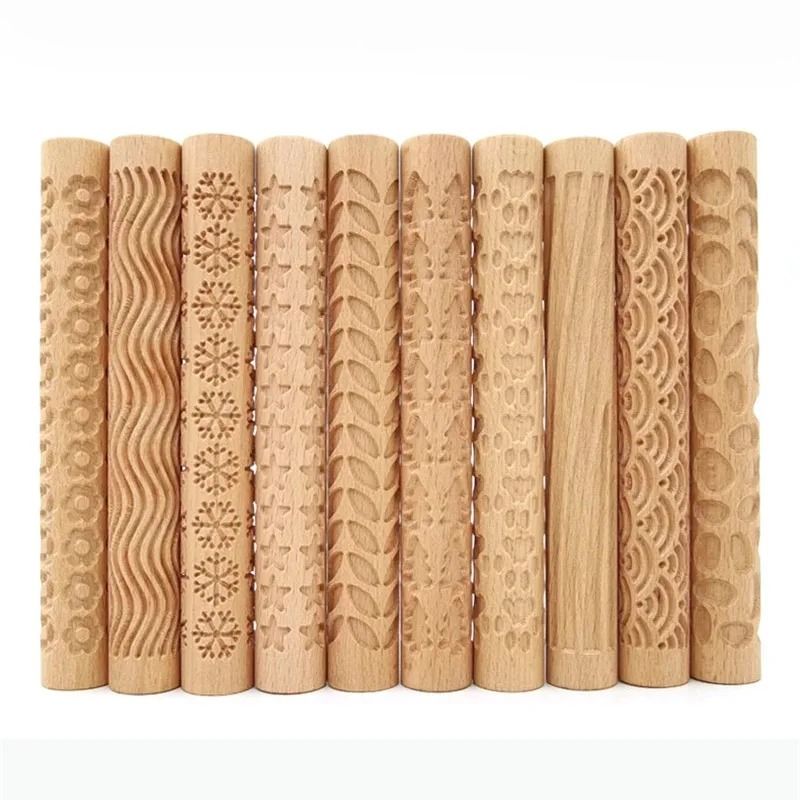 Wooden Texture Rolling Pin For Pottery, Clay, And DIY Craft Projects pattern D