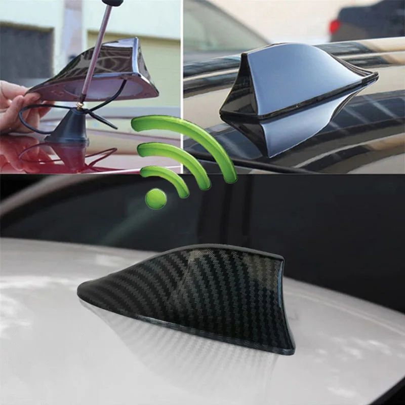 Universal Shark Fin Car Antenna With Carbon Fiber Look And Signal Amplifier b silver