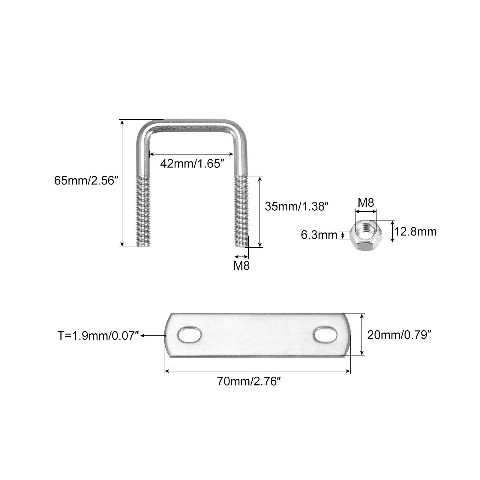 Square U-Bolts 304 Stainless Steel, U Bolt with Nuts and Plates, for Boat Trailer
