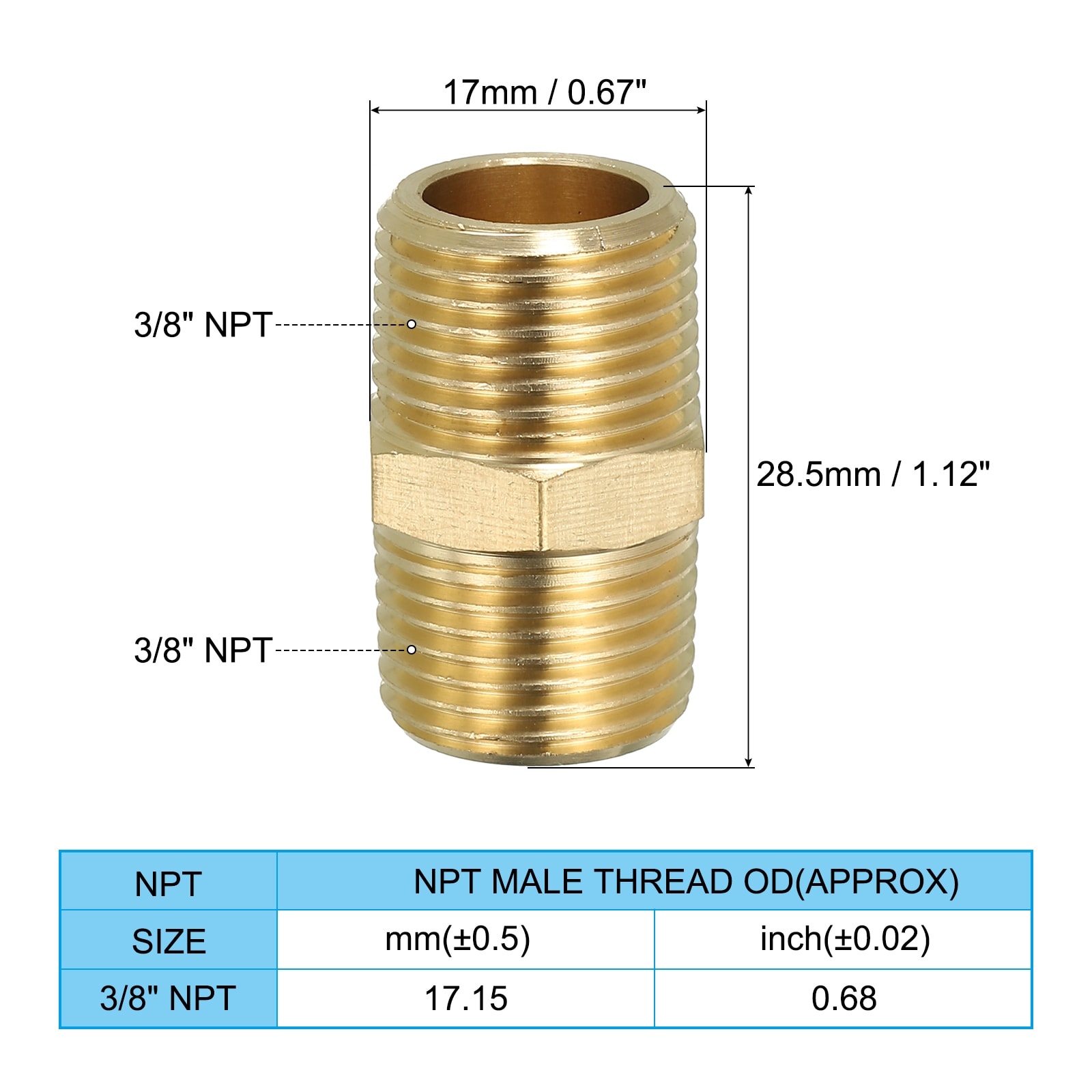 Solid Brass Hex Nipple Pipe Fitting Thread Adapter, NPT x NPT Male Water Line Connectors Couplings - Yellow