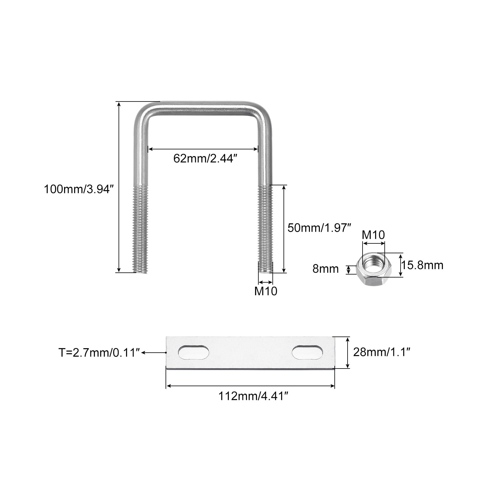 Square U-Bolts 304 Stainless Steel, U Bolt with Nuts and Plates, for Boat Trailer