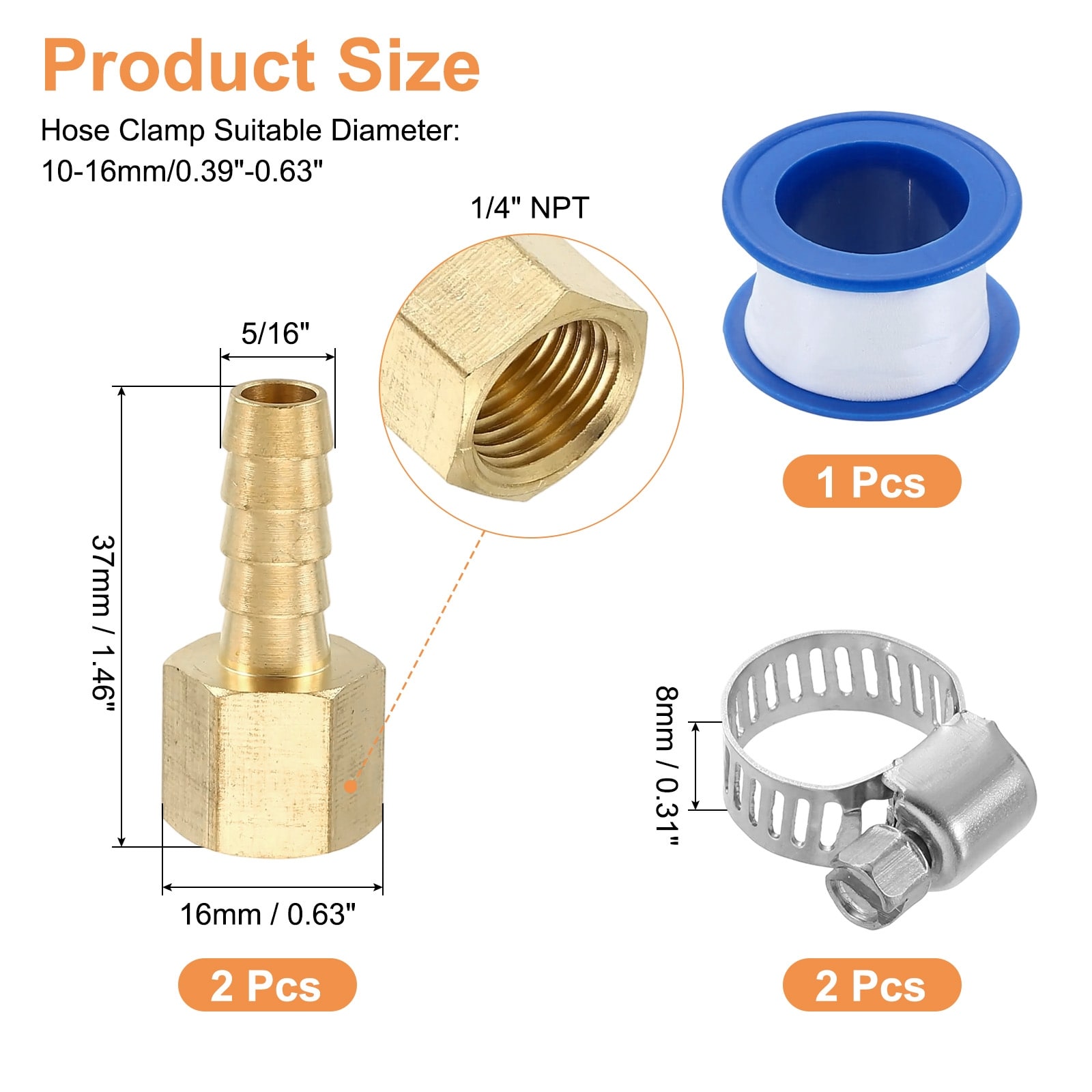 Brass Hose Barb Fittings, Hose Connector with Hose Clamps for Water Fuel Gas Oil Transportation