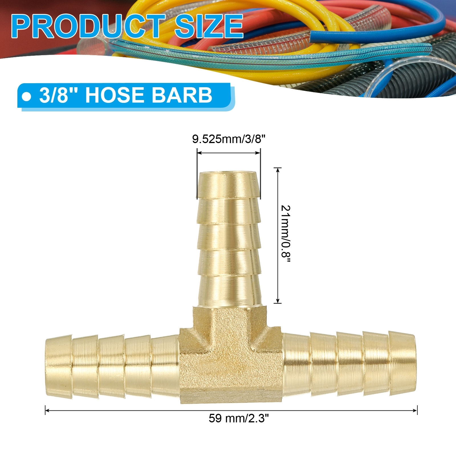 Barb Tee Fitting, 3 Way Union T-Shaped Brass Hose Barbed Fittings Intersection for Water Fuel Air Oil Gas