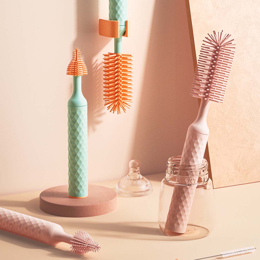 Rotating Baby Pacifier Cleaning Brush Set, Electric Silicone Bottle Brush With Lithium Battery green