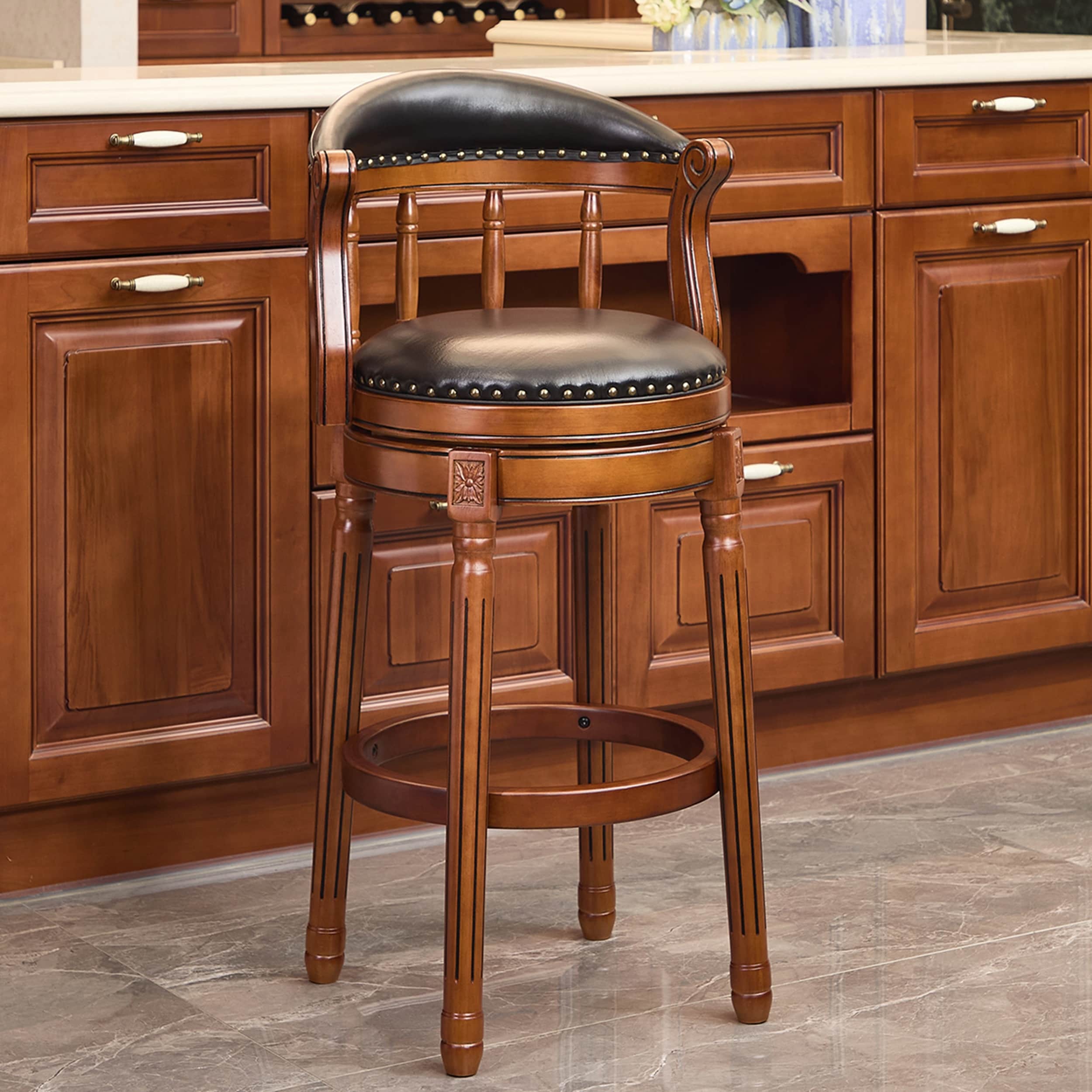 Comfortable Cow Top Leather Wooden Bar Stools with 360 Degree Swivel for Home Kitchen and Counter Use