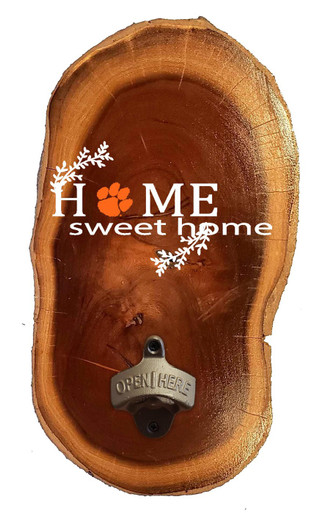 Clemson Tigers Home Sweet Home Wood Slab Bottle Opener