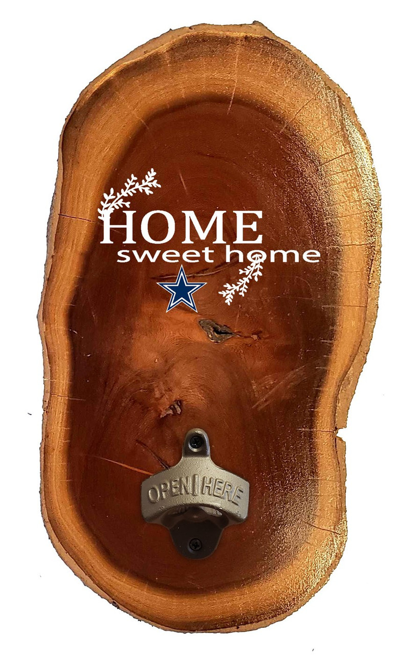 Dallas Cowboys Home Sweet Home Wood Slab Bottle Opener