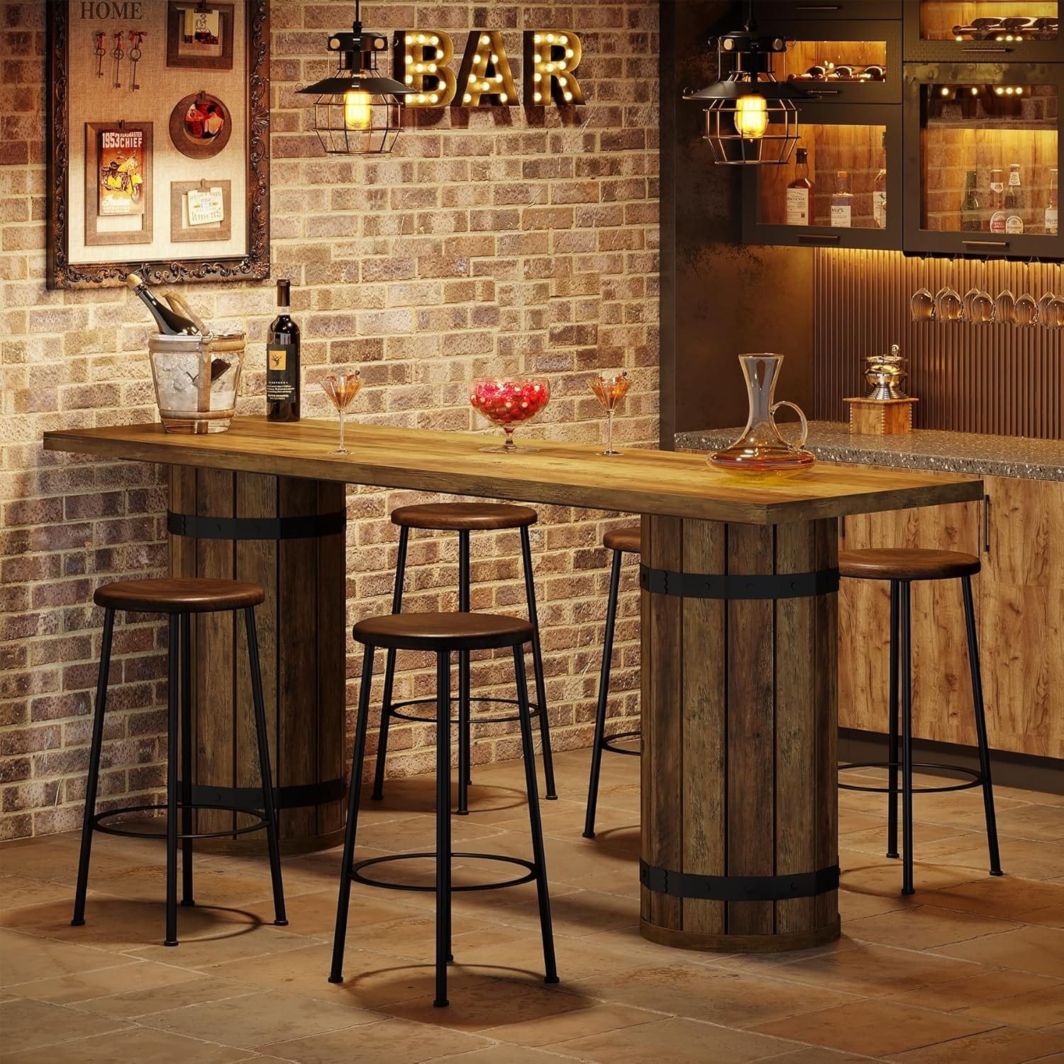 70.9-Inch Industrial Long Counter Height Pub/Bar Table with Fence Pedestal Base for Home Bar, Living Room, Small Bars