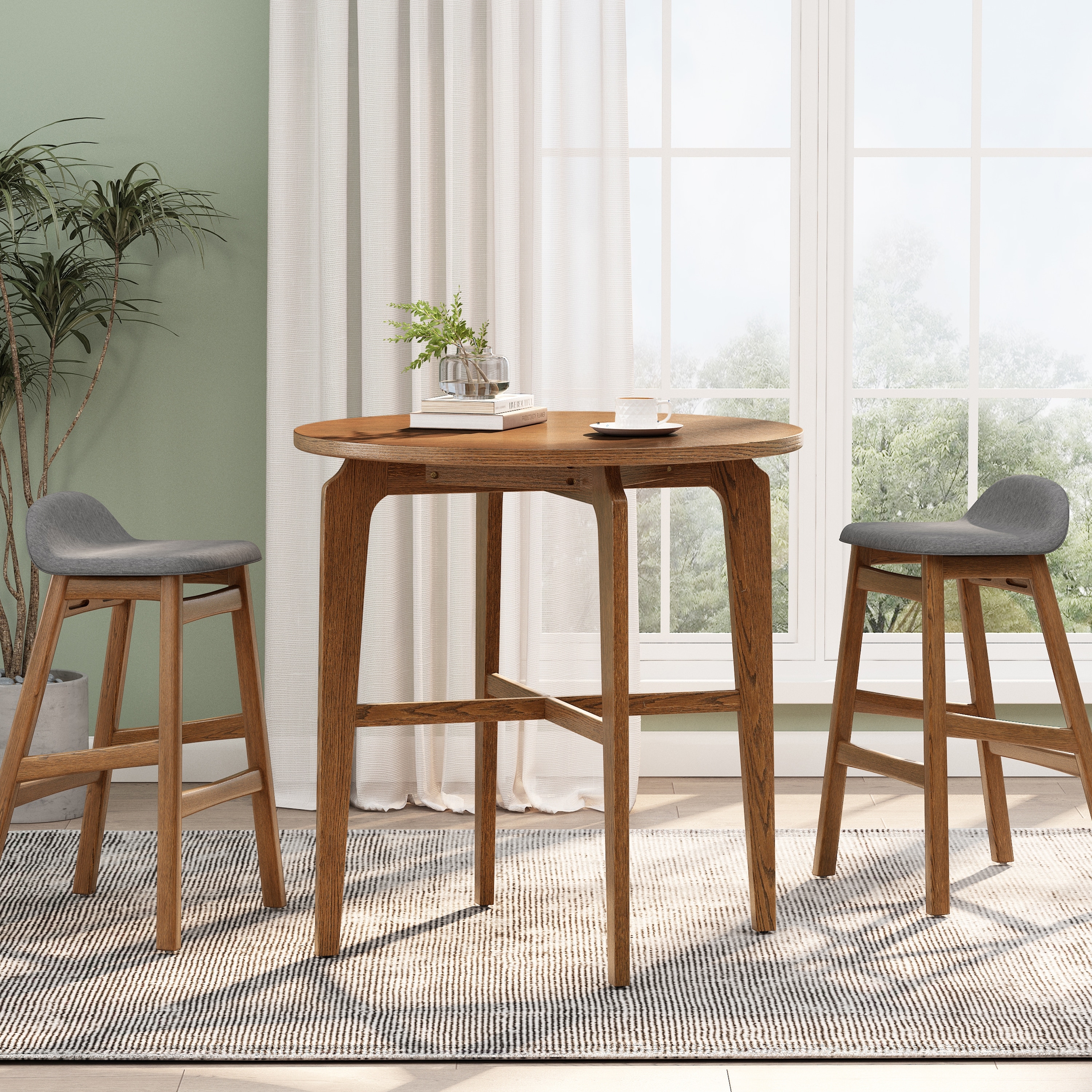 Christopher Knight Home - Bracken Retro Nordic Counter Height Bar Table with Solid Wood Legs & Cross-Reinforced Beams