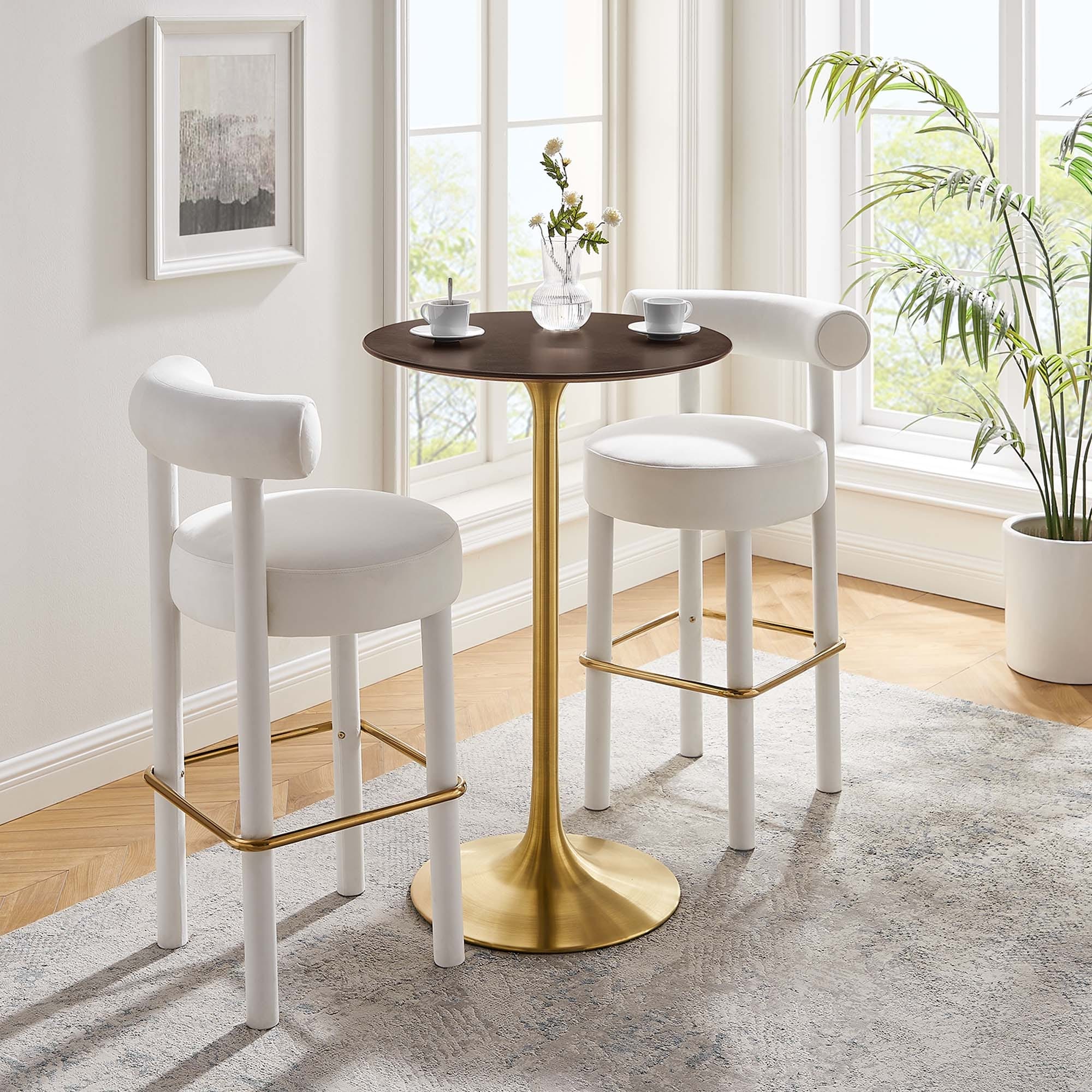 Halverson White and Chrome Faux Marble Round Top Bar Table