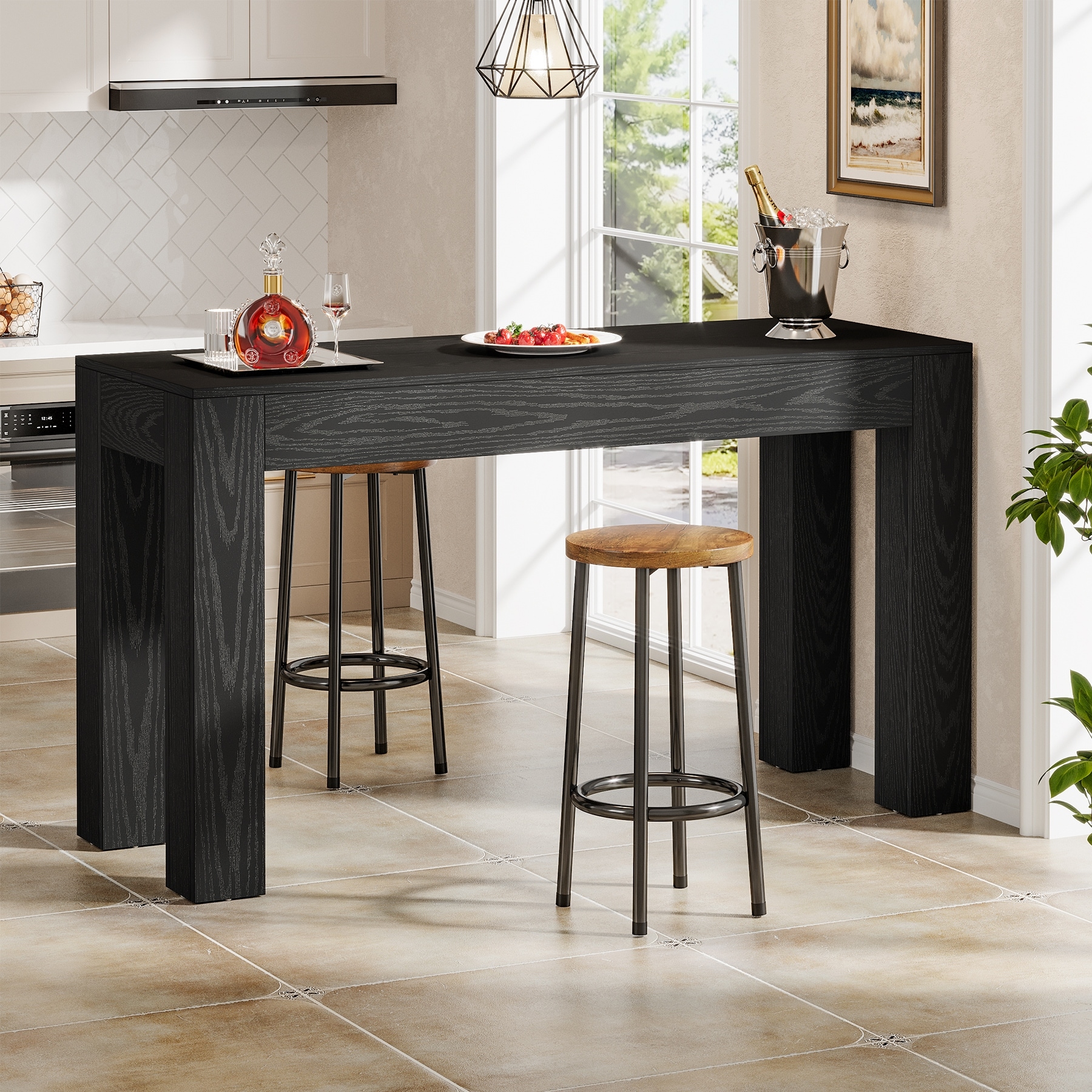 Home Bar Unit, Modern 2-Tier Bar Table with Footrest - 15.75"D x 62.99"W x 41.54"H