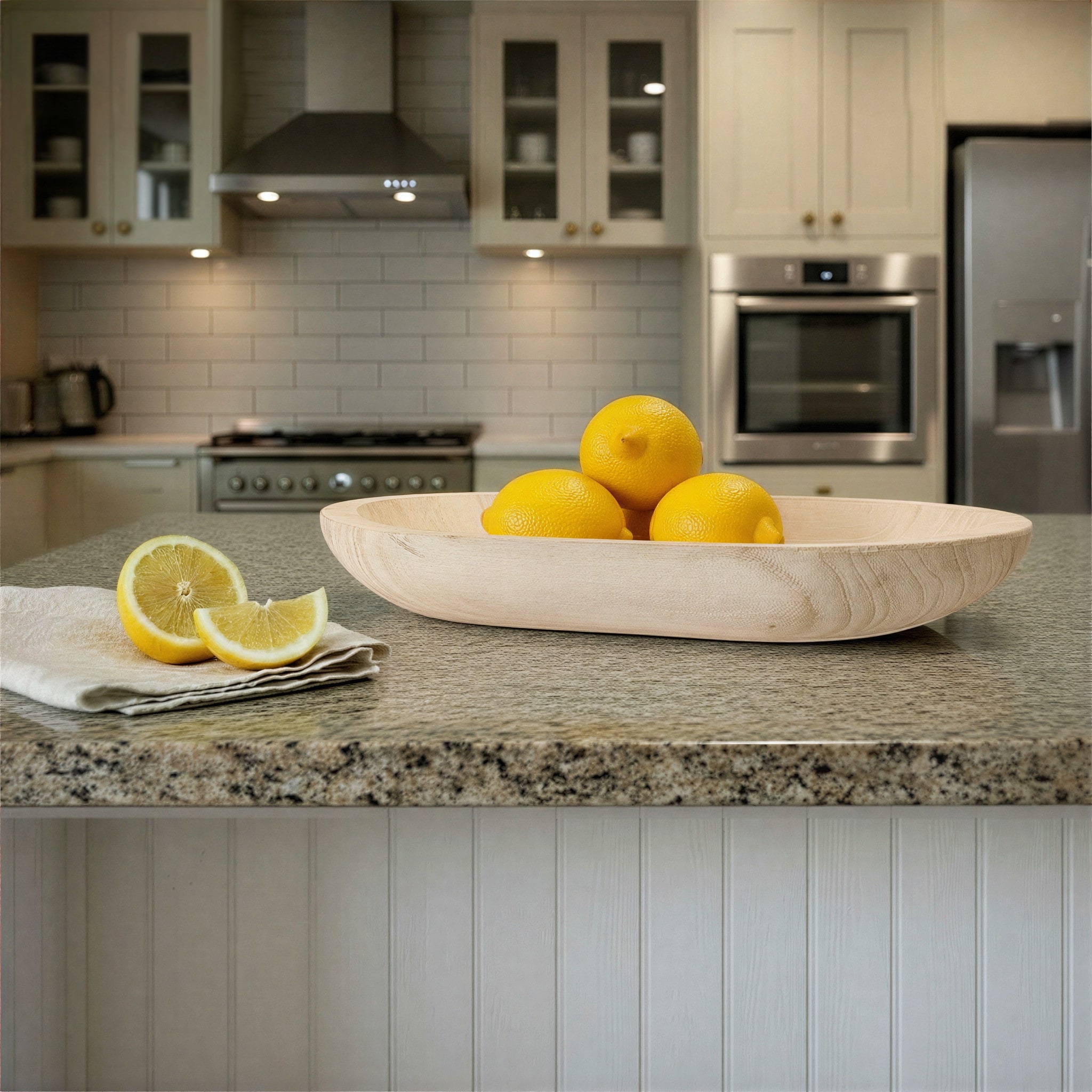Hand-Carved Paulownia Wood Bowl - 14.5"L x 10.3"W x 2.0"H