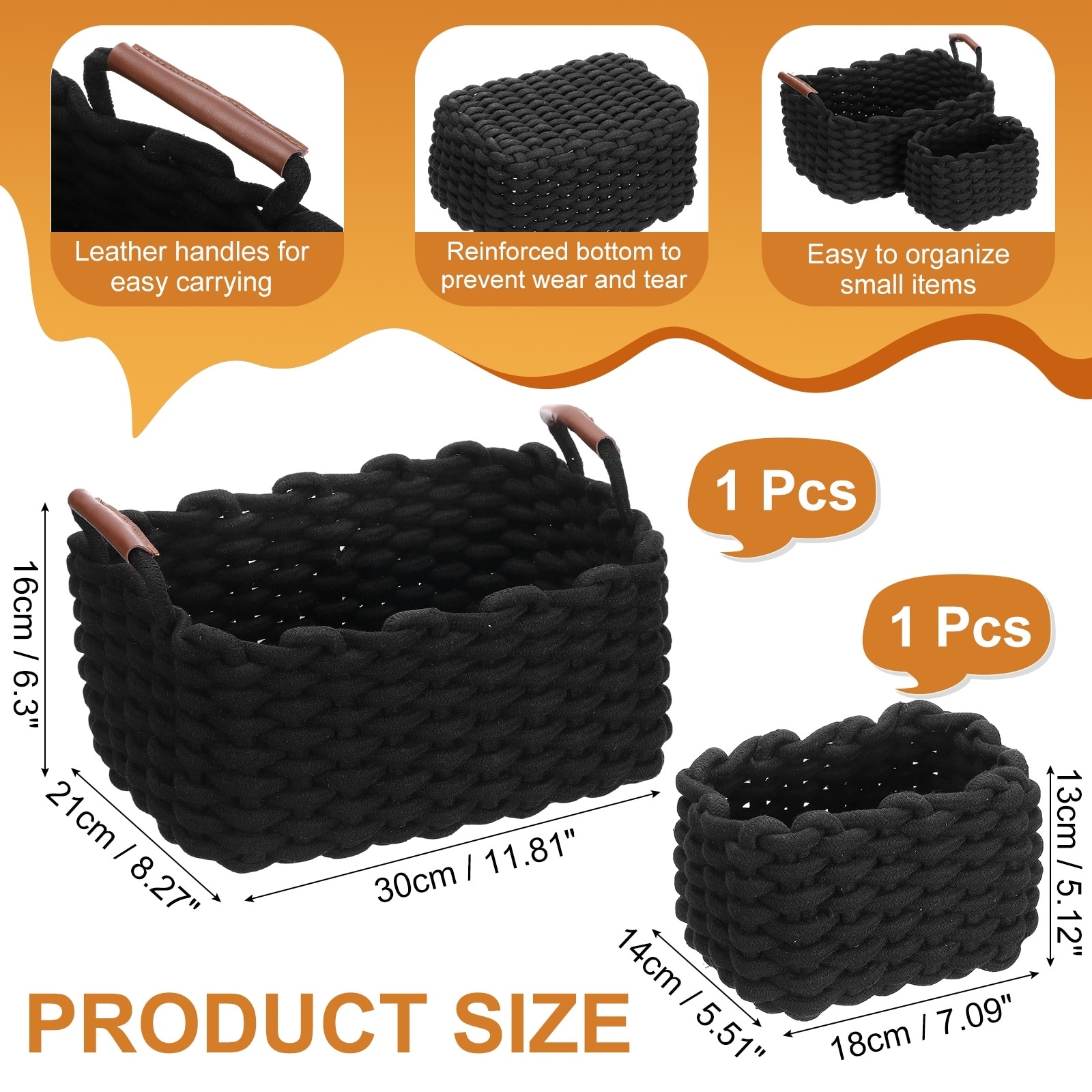 Woven Basket Cotton Rope Storage Baskets with PU Handle Gift Chest Box for Shelf Organizing Bedroom Home Decor