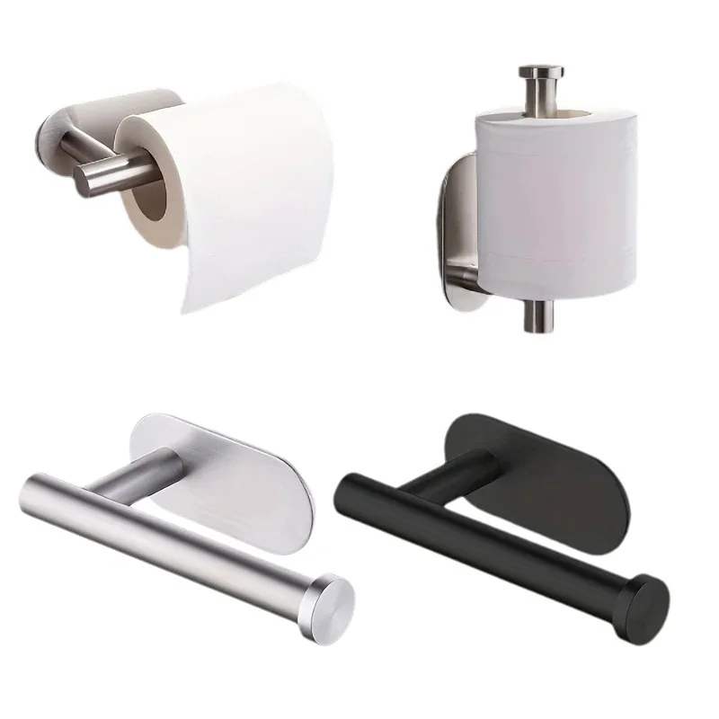 Wall Mounted Stainless Steel Paper Roll Holder No Drilling Required For Kitchen Bathroom black