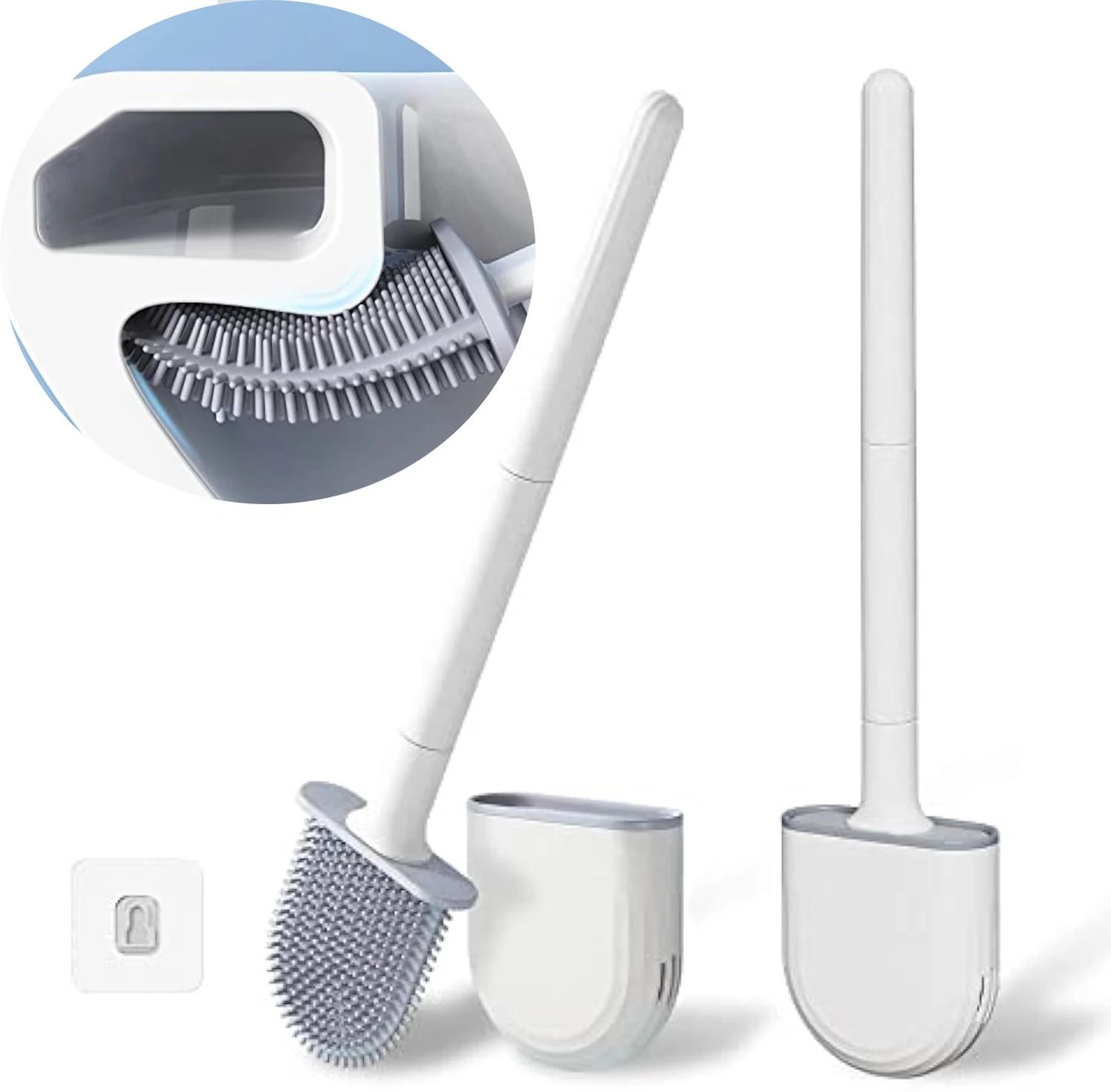 Wall Mounted Silicone Toilet Brush With Soft Bristles And Compact Holder orange