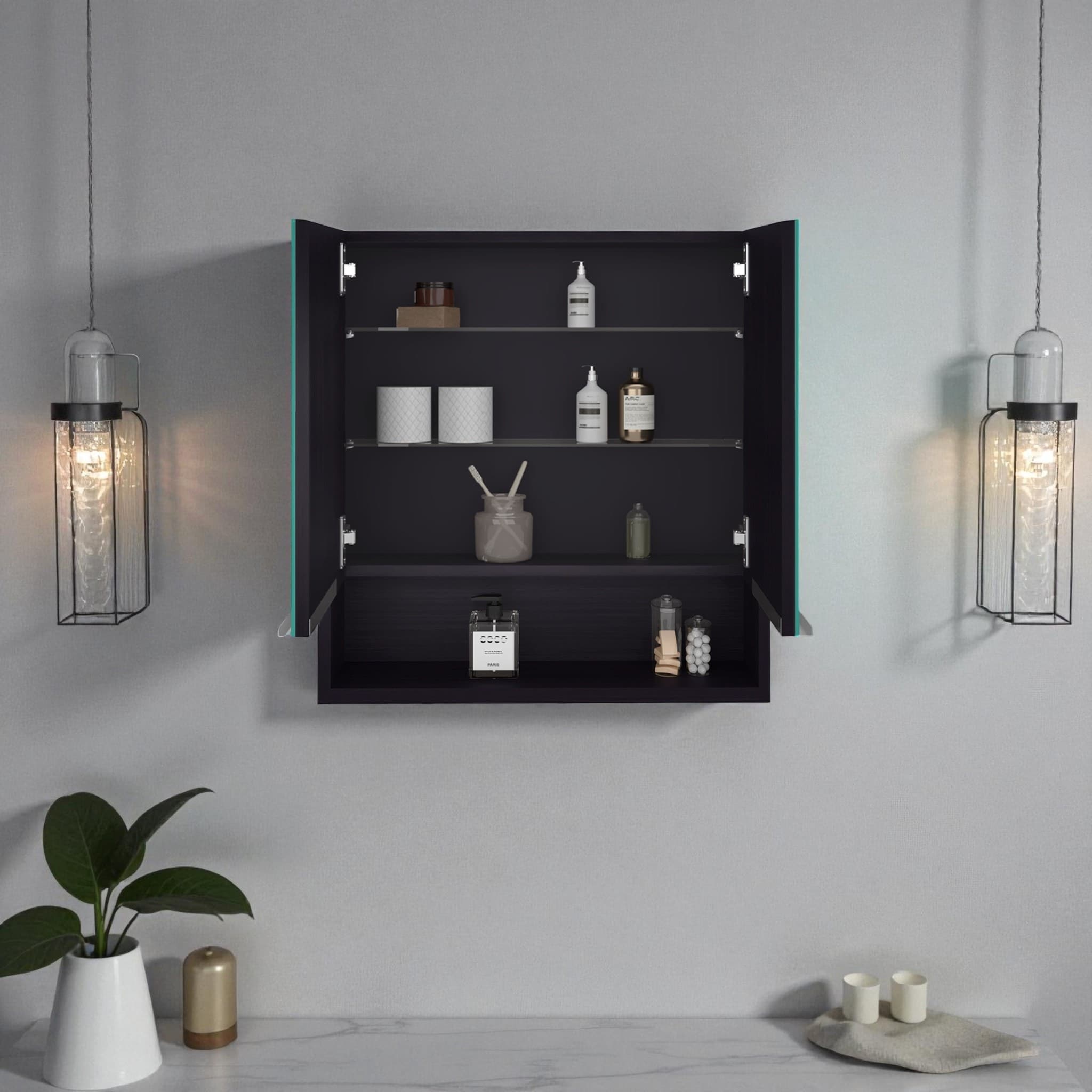 Wall Mounted Mirror Cabinet with Double Doors and Storage Shelves
