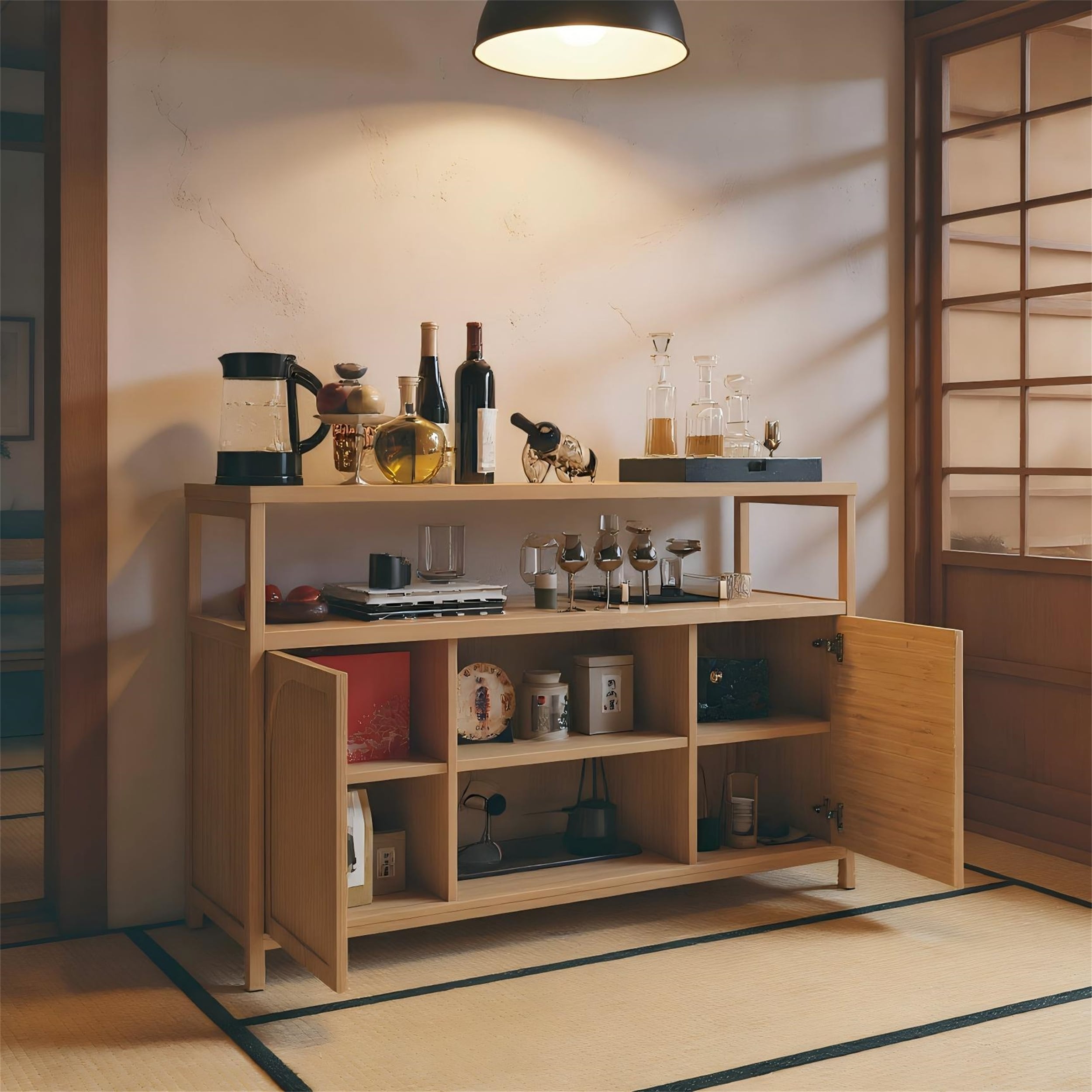 Bamboo Bathroom Cabinet with Magnetic Doors, 2 Open & 2 Inner Shelves