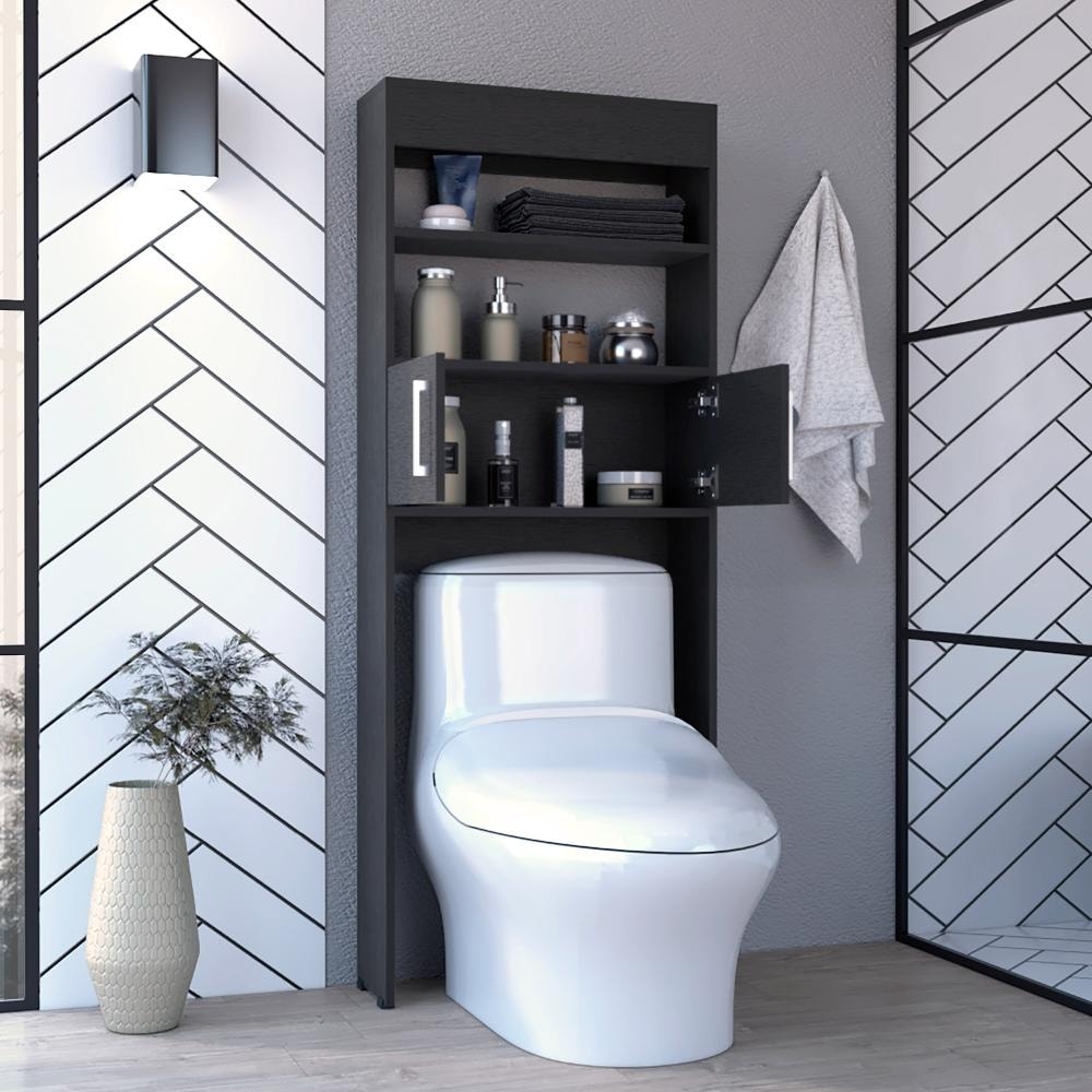 63H" Over The Toilet Cabinet, Two Shelves, Double Door, Black