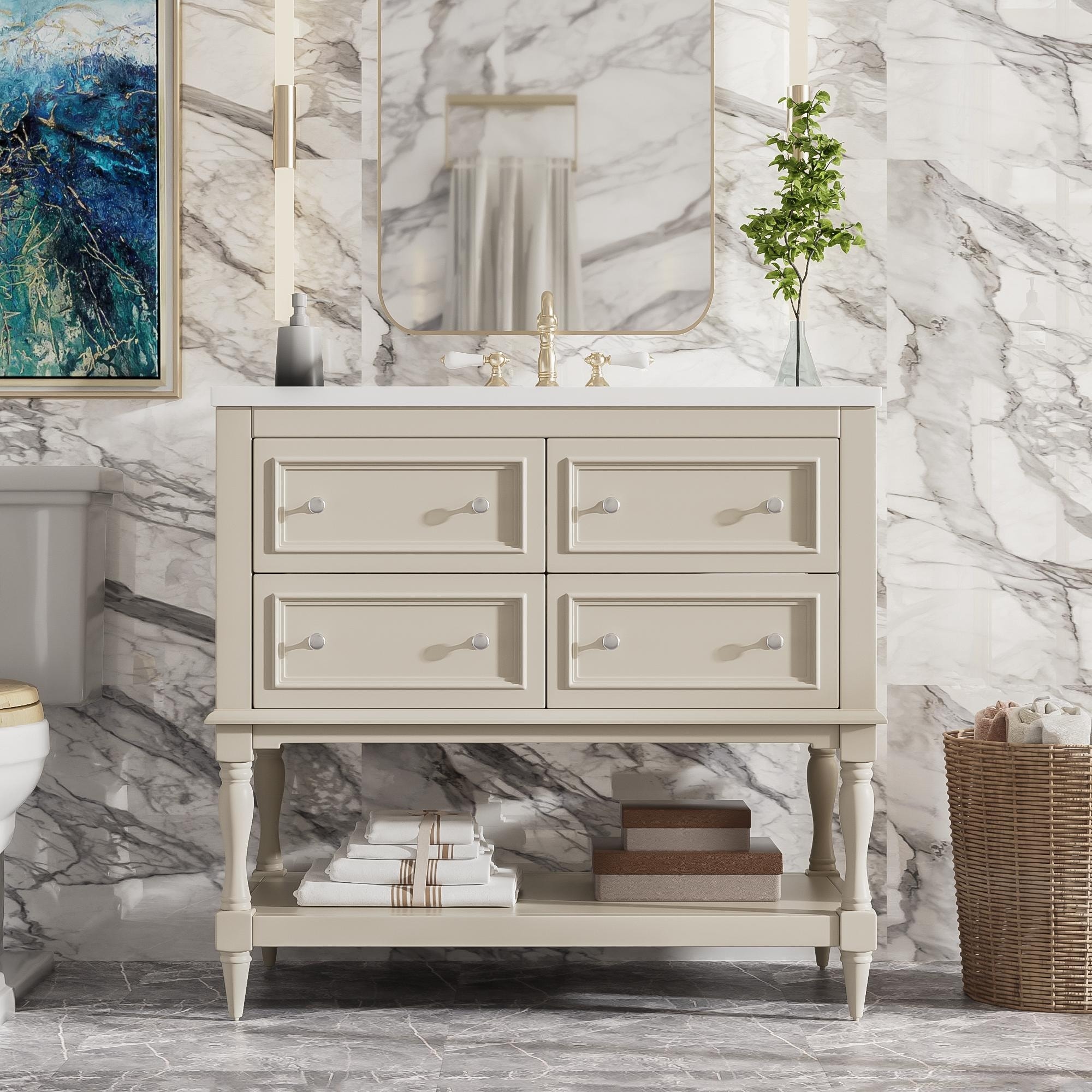 36" Bathroom Vanity Cabinet with Sink Combo Set, Undermount Ceramic Sink, Free Standing Vanity Set with 4 Drawers, Solid Wood Fr