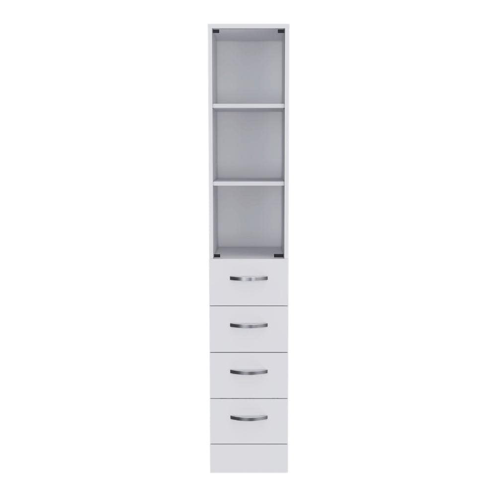 Linen Cabinet 68" H, Three Shelves, Four Drawers and Metal handles, White