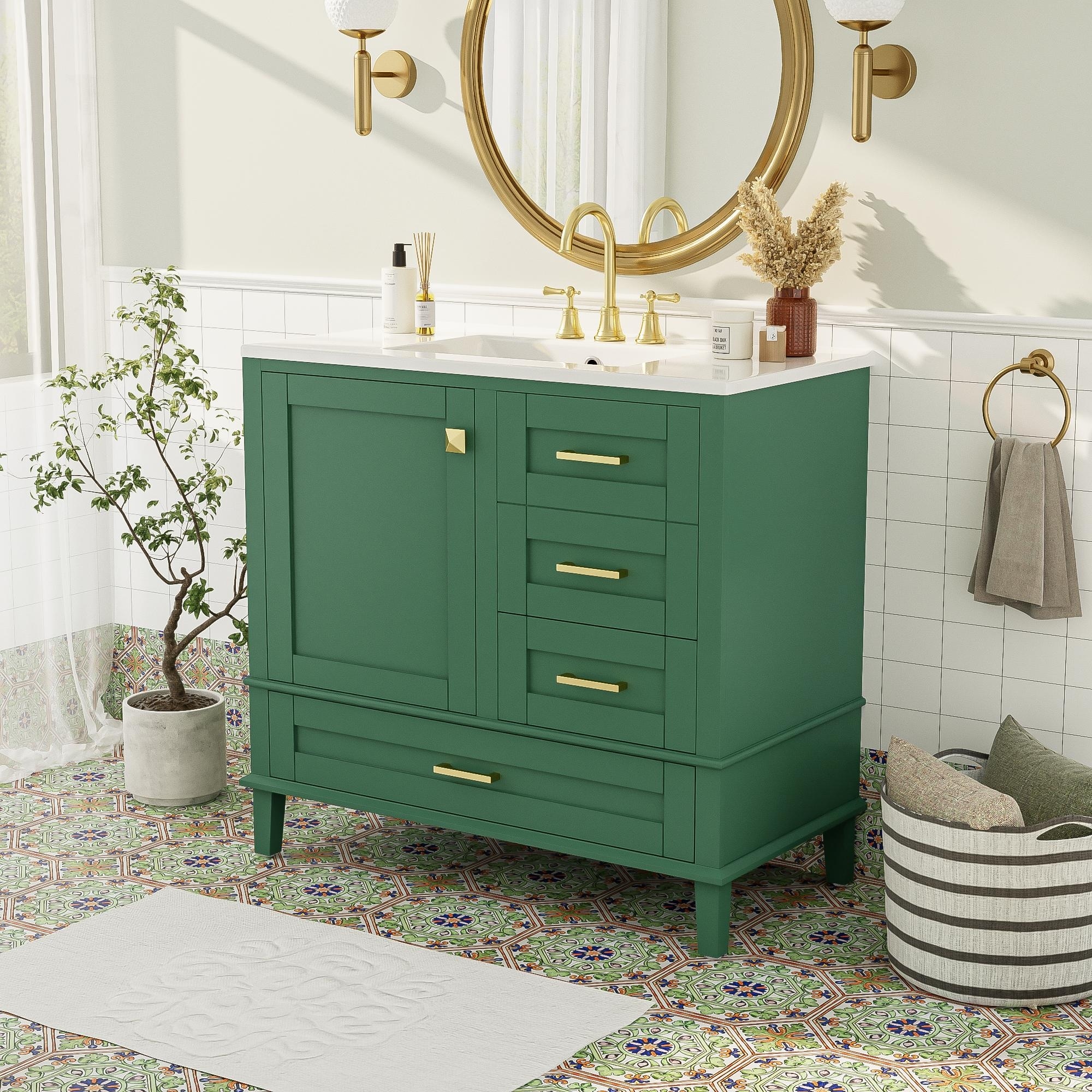 36" Black Bathroom Vanity with Solid Pine Frame, 1 Soft Close Door and 3 Drawers , Modern Storage Cabinet
