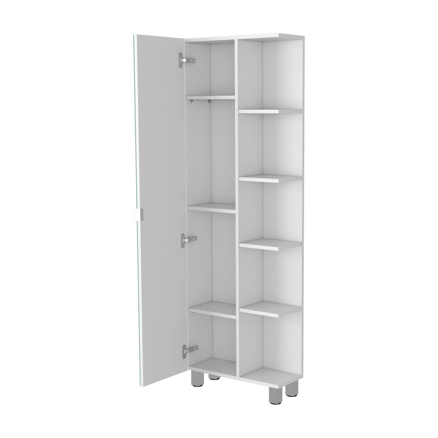 Quintana Wall-Mounted Mirror Medicine Cabinet With One Door And Four Open Compartments, White