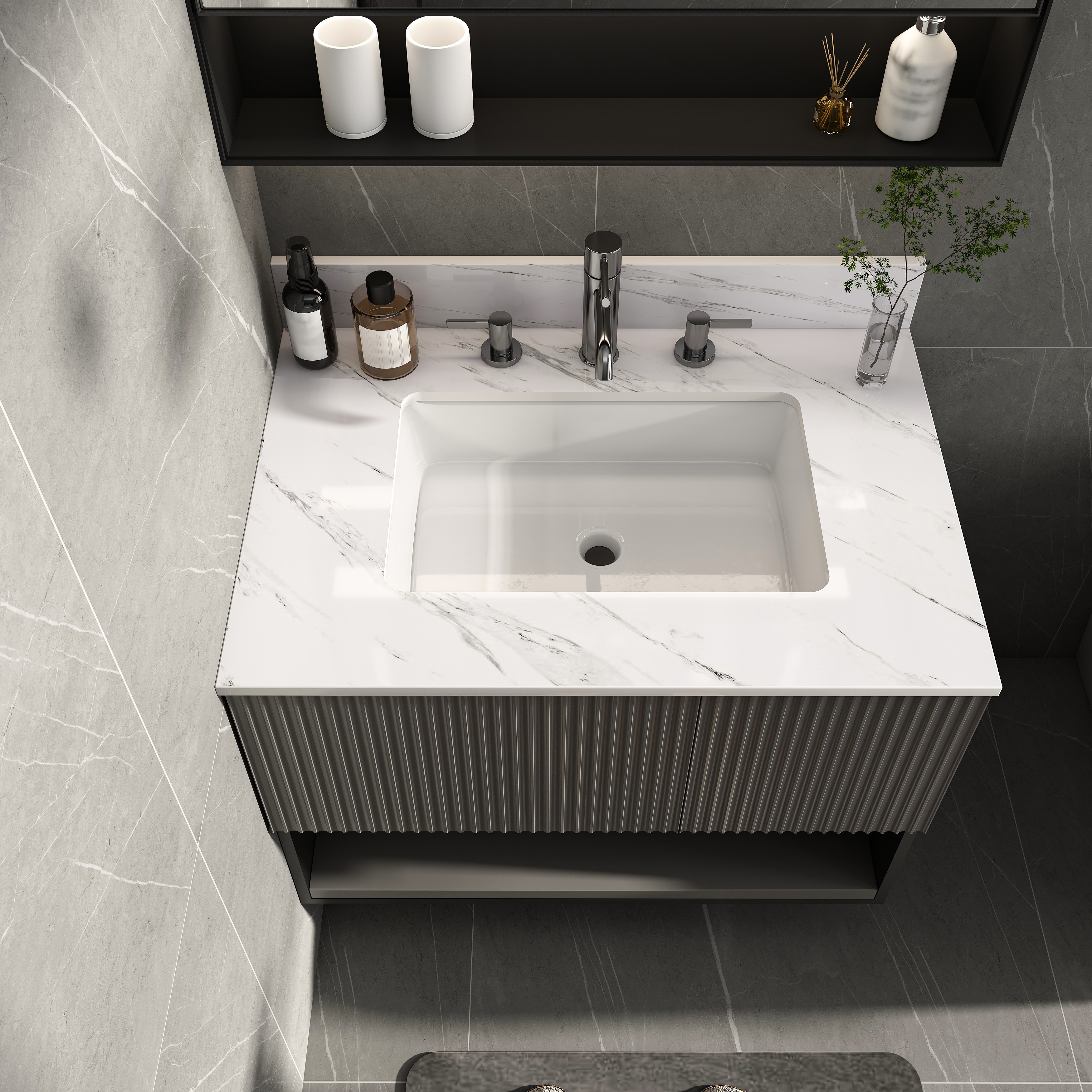 Roomfitters 31 Inch Bathroom Vanity Top with Undermount Sink, Durable Sintered Stone Countertop with Backsplash, White