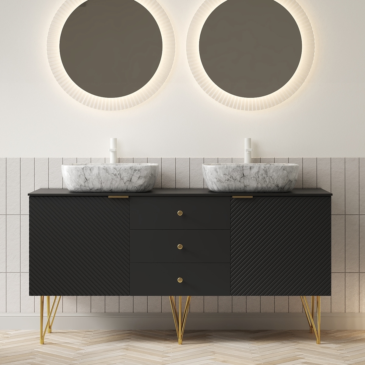 Bathroom Vanity&Sink, Freestanding Storage Cabinet, 3 Drawers And 2 Doors,Bowl Ceramic Vessel Basin&Black Sintered Stone Top