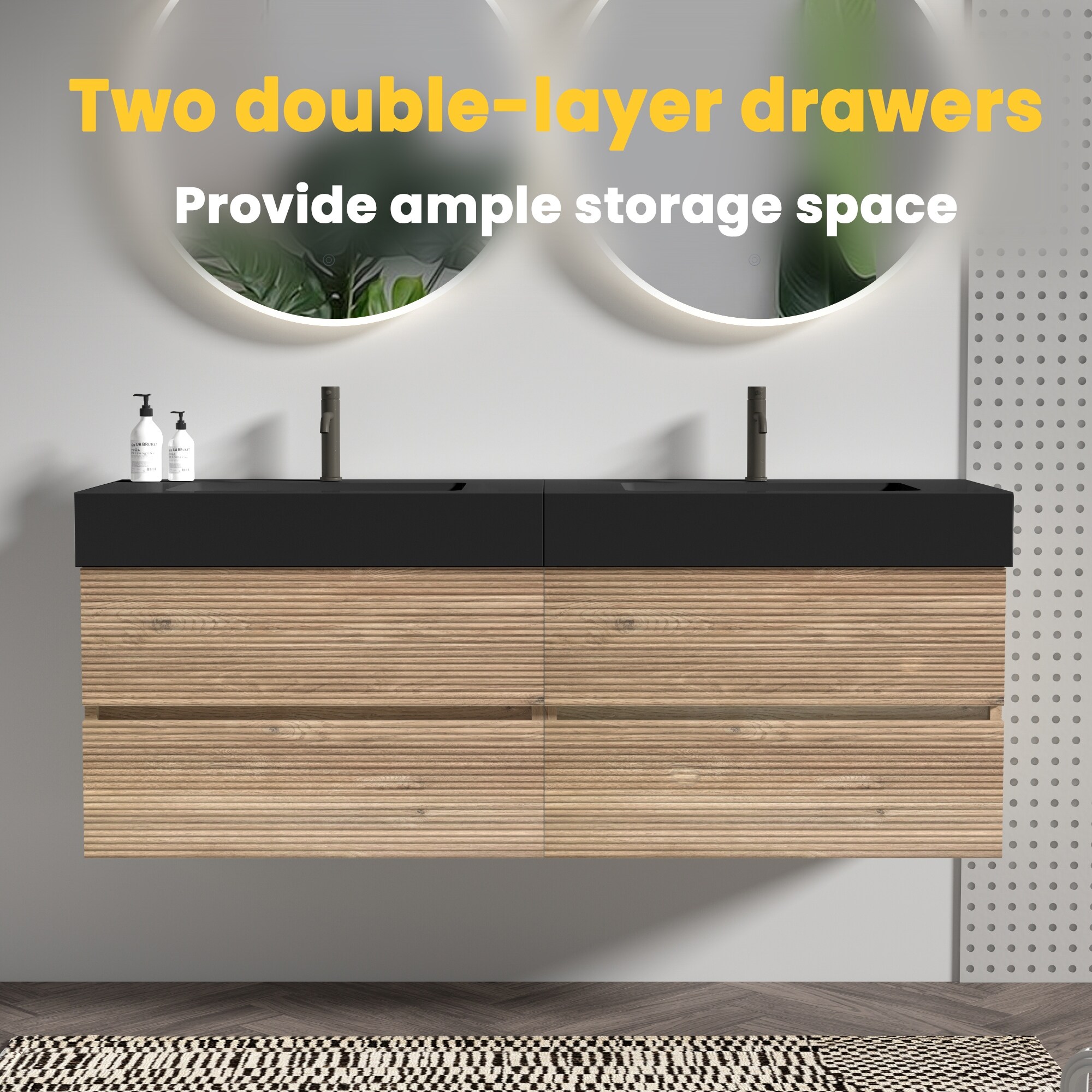 24"/30"/36" Wall Mounted Bathroom Vanity with Engineered Quartz Sink, 48"/60"/72" Floating Double Sink Bathroom Vanity