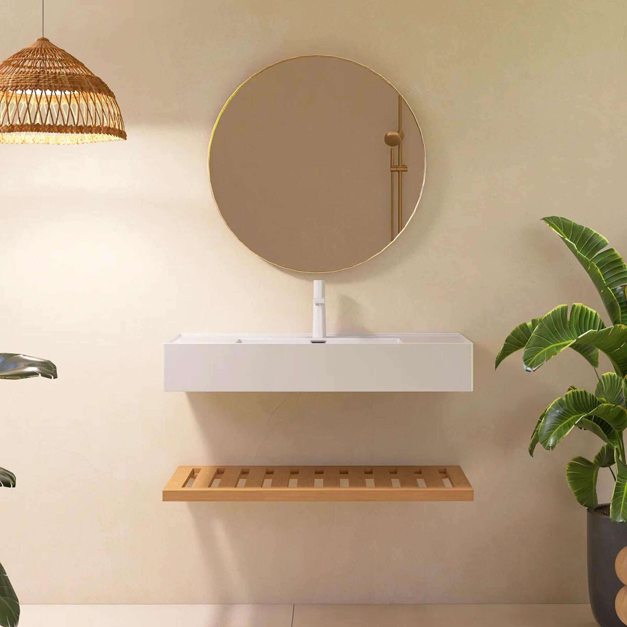 Wall-Mounted Bathroom Vanity in Natural Wood with White Integrated Acrylic Sink