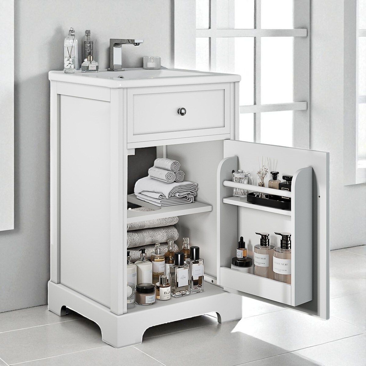 Freestanding 20" Bathroom Vanity with Sink, Single Hole Faucet Mount, Storage Rack and Adjustable Shelf
