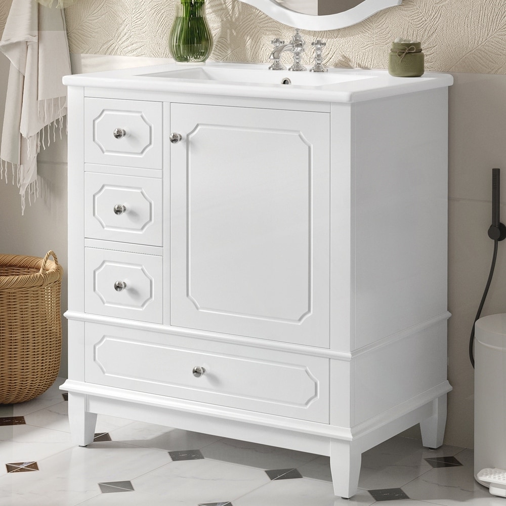 Freestanding White Vanity Cabinet with Ceramic Basin