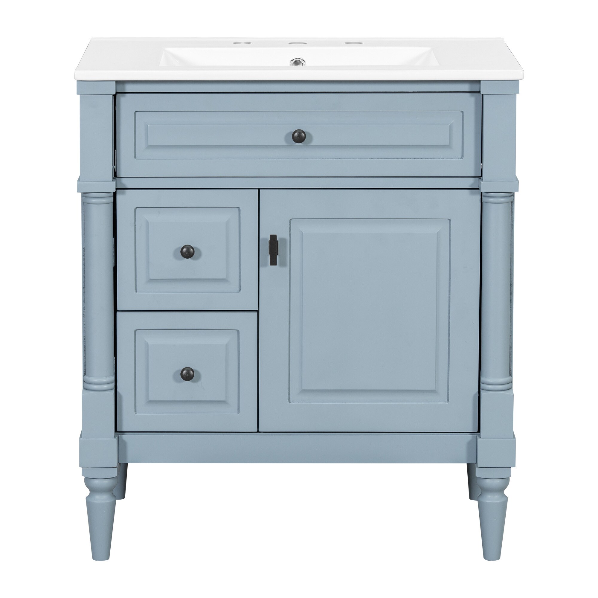30" Wood Bathroom Vanity with Solid Wood Frame, 1 Soft Close Doors, 2 Soft Close Drawers, Adjustable Shelf