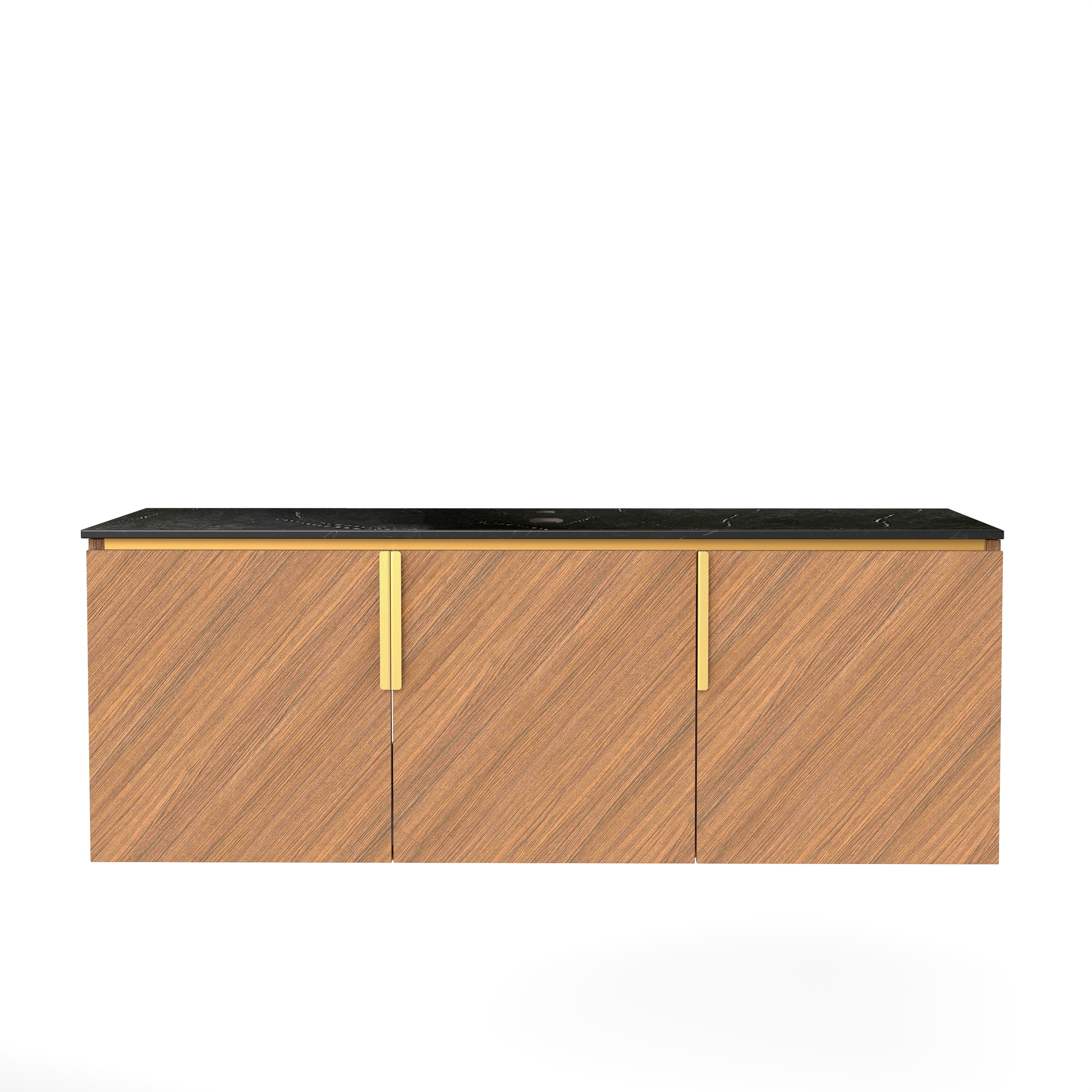 48" Black Sintered Stone with Stone Pattern Countertop and Brown Oak Cabinet, NO Basin, NO Faucet and Sink Cover