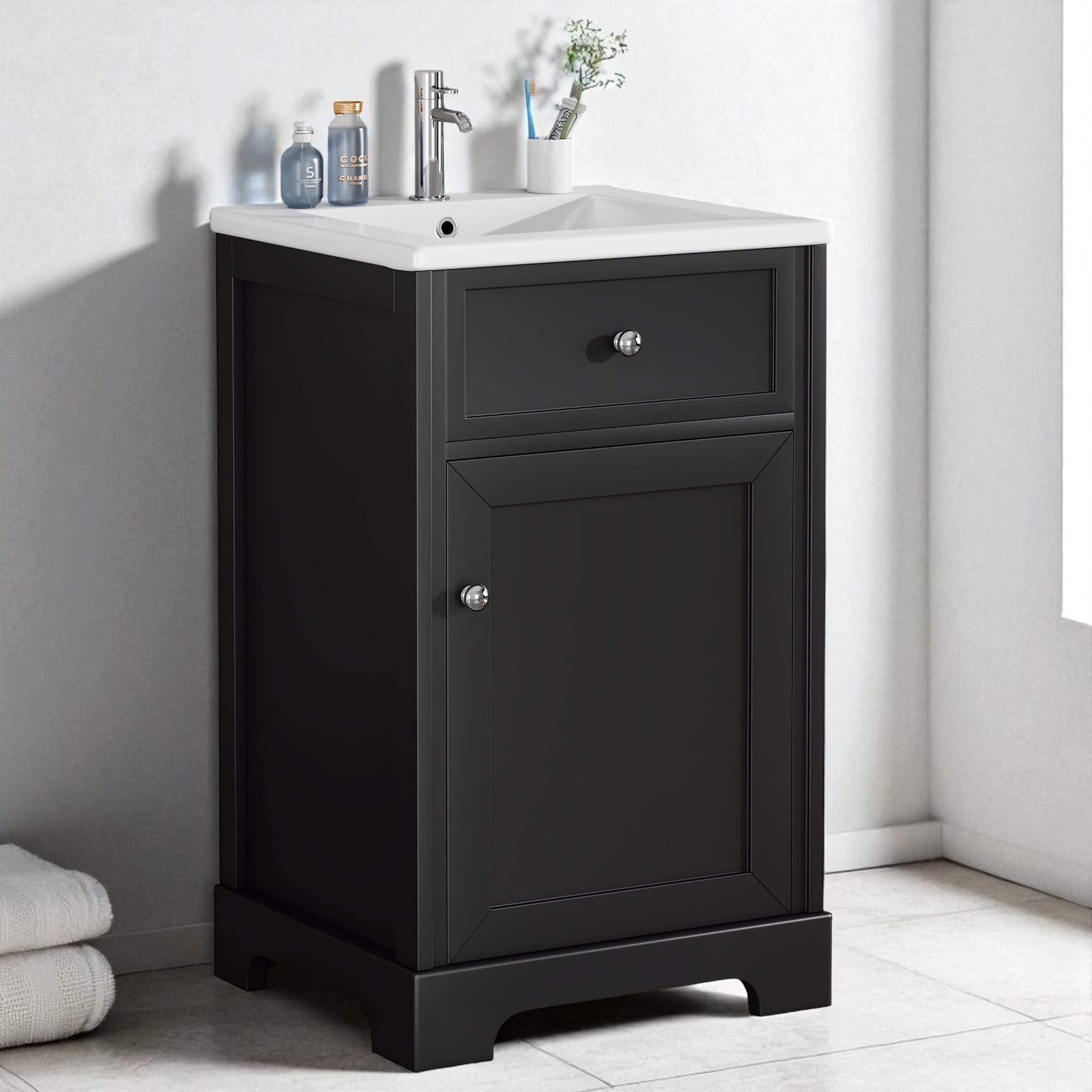 Freestanding 20" Bathroom Vanity with Sink, Single Hole Faucet Mount, Storage Rack and Adjustable Shelf