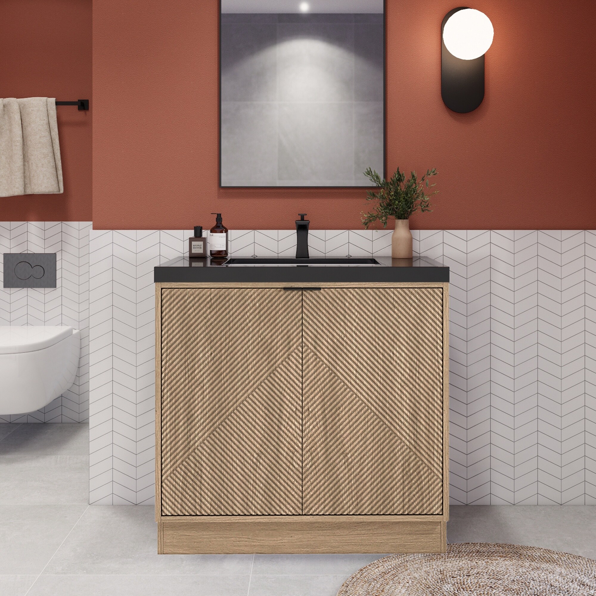 Milano 36" Freestanding Bathroom Vanity with Black Acrylic Sink