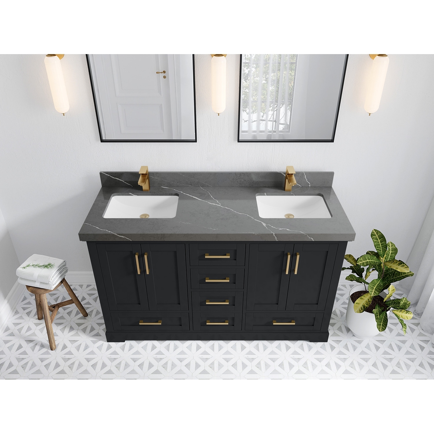 Willow Collection 60 in W x 22 in D x 36 in H Boston Double Bowl Sink Bathroom Vanity with Countertop