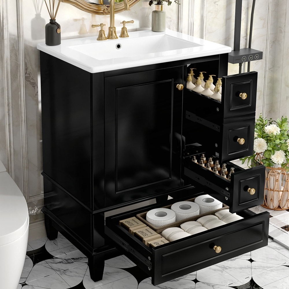 24" Bathroom Vanity with Ceramic Sink and Smart Storage, Waterproof