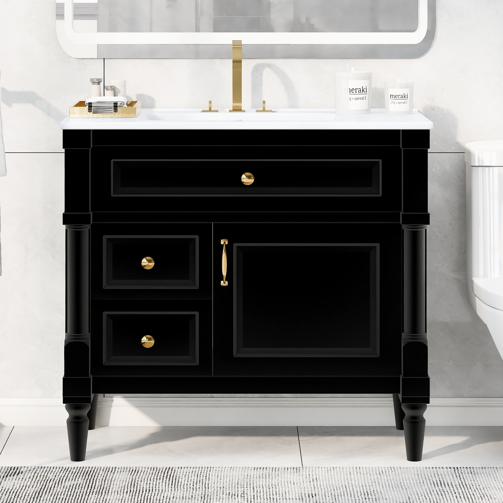 36" Bathroom Vanity with Ceramic Sink, Soft-Close Doors, Standard & Double-Layer Drawers & Adjustable Shelves