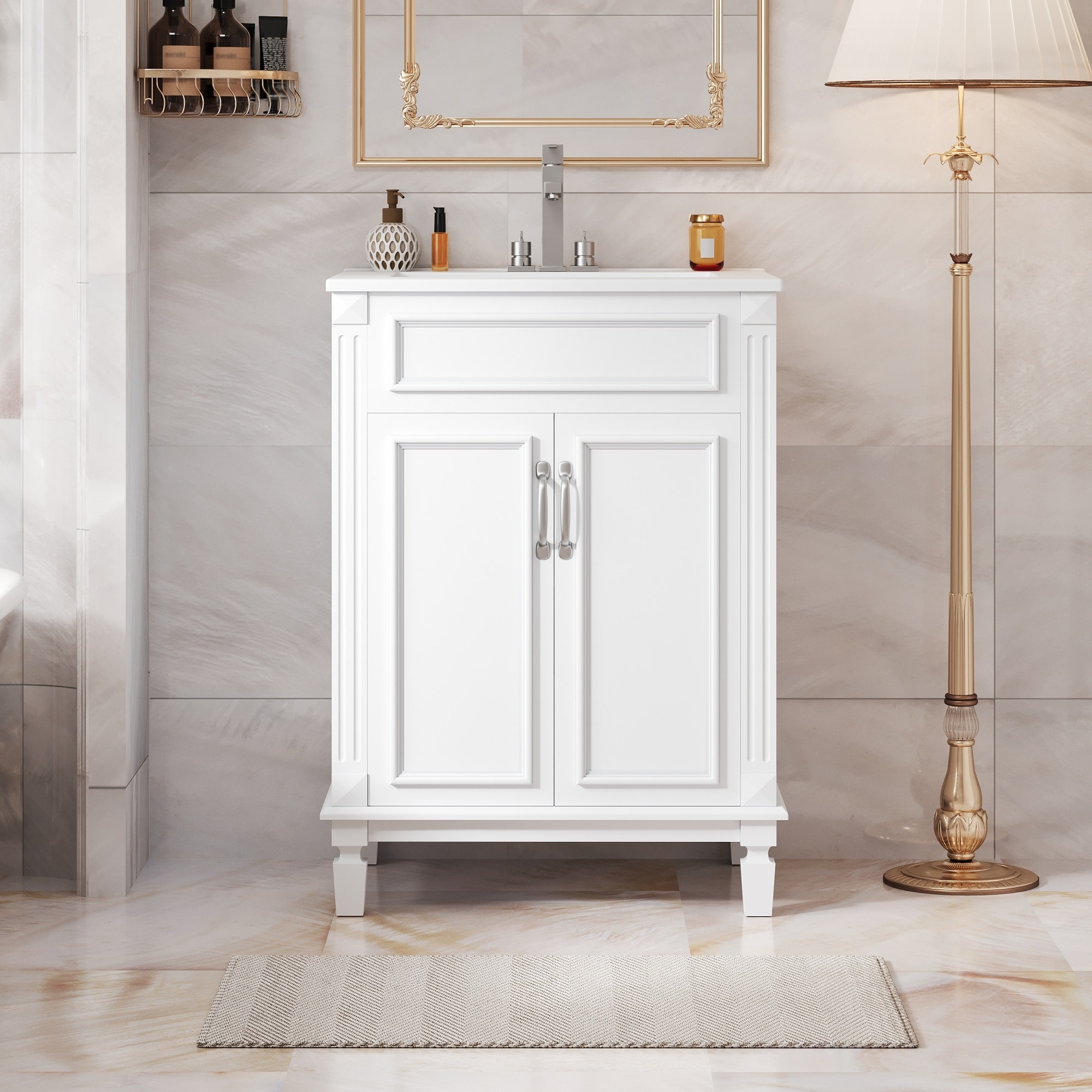 24'' Bathroom Vanity with Top Sink – Modern Storage Cabinet, 2 Soft-Closing Doors, Adjustable Shelf, Solid Wood Frame.