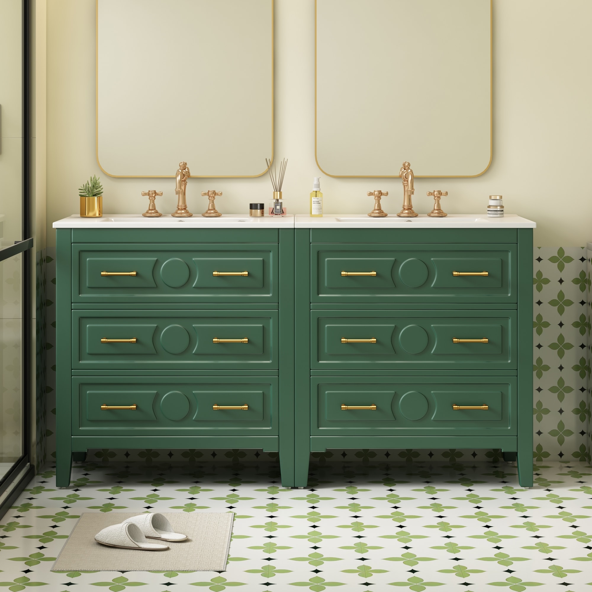 GDFStudio - Wellington Retro Freestanding Double Bathroom Vanity Set with Ceramic Sink and 3 Storage Drawers, Set of 2 - 60'W