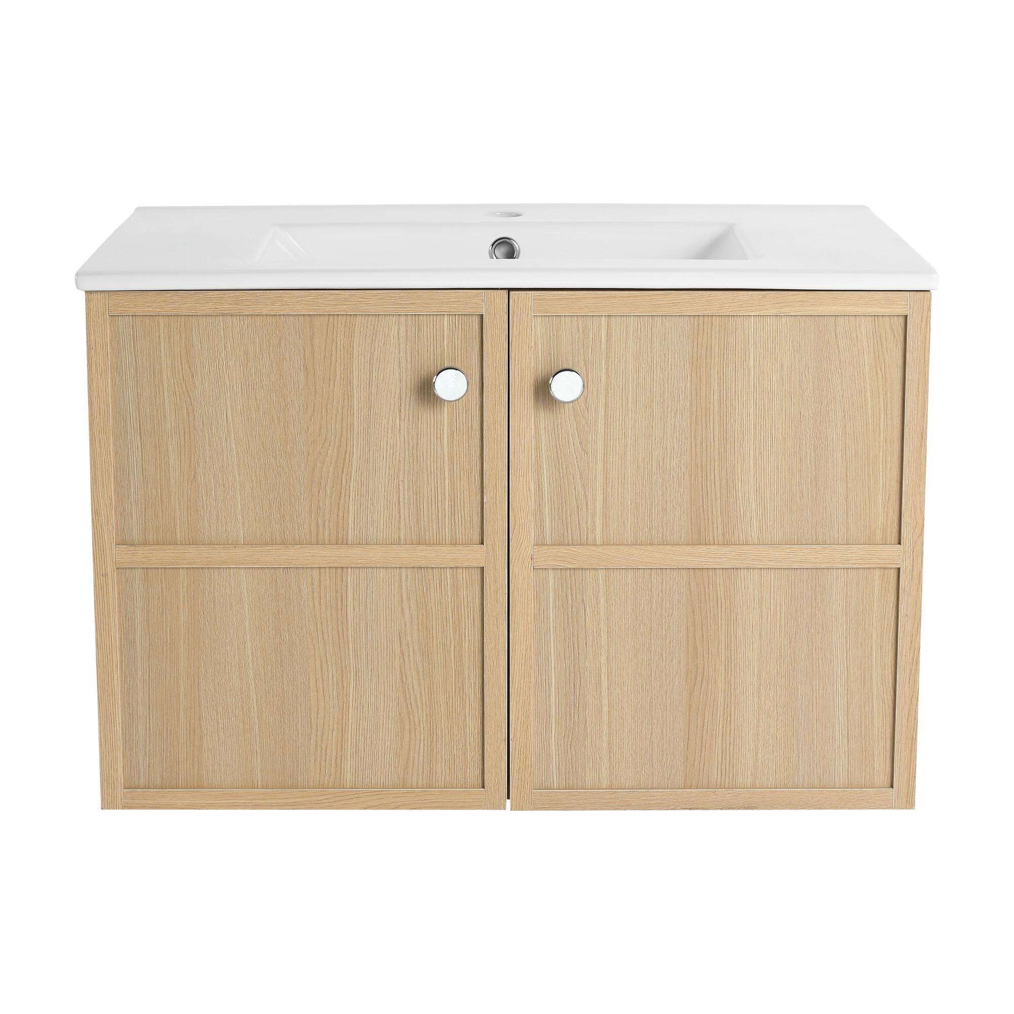 CB HOME 24''/30''/36''/48''/60'' Wall Mounted Bathroom Vanity with Sink, OAK Floating Bathroom Vanity Cabinet with Sink,Drawers.